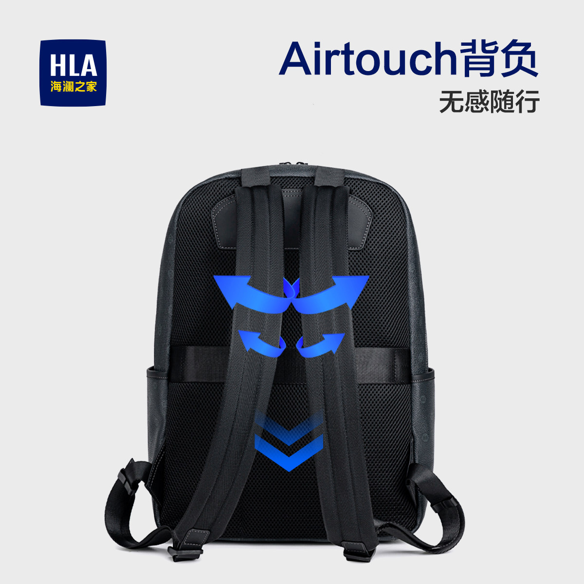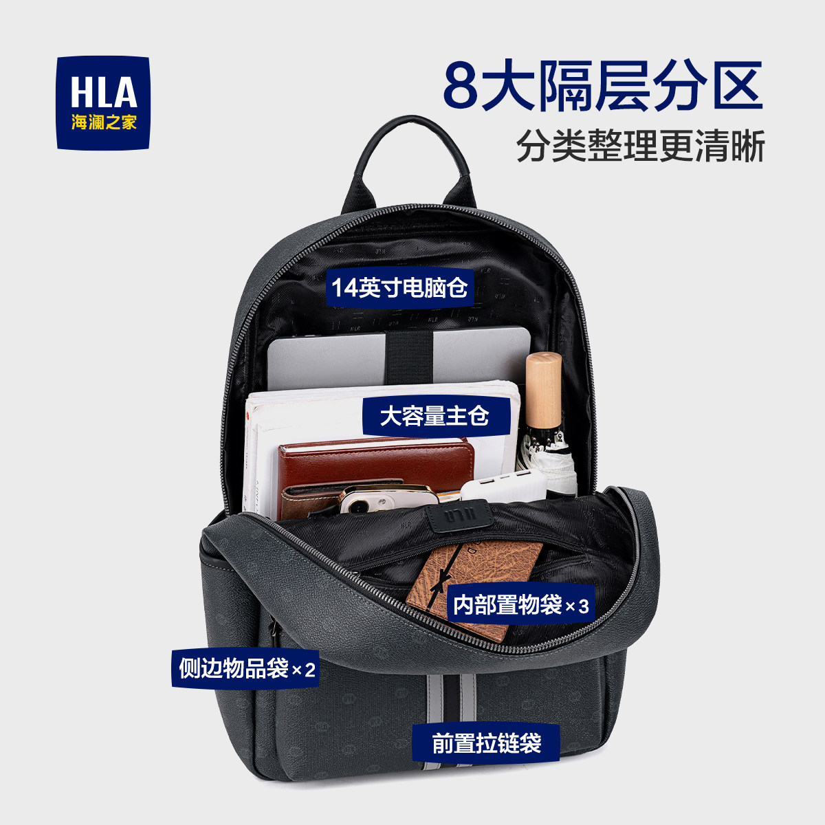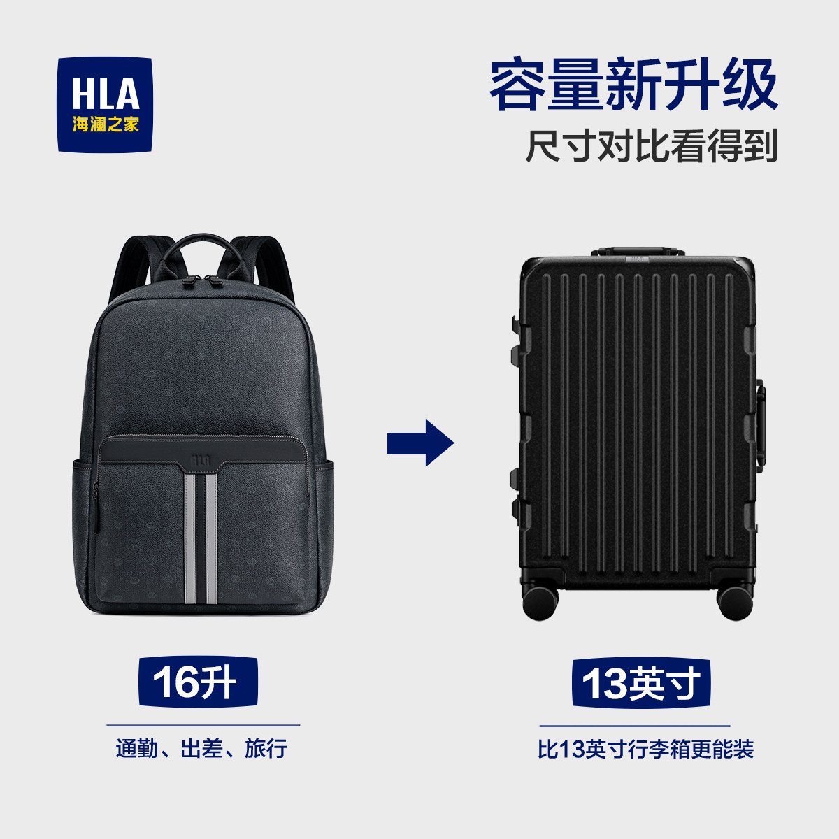 天猫HLA/海澜之家男士双肩包商务出差通勤老花书包背包轻便旅行电脑包