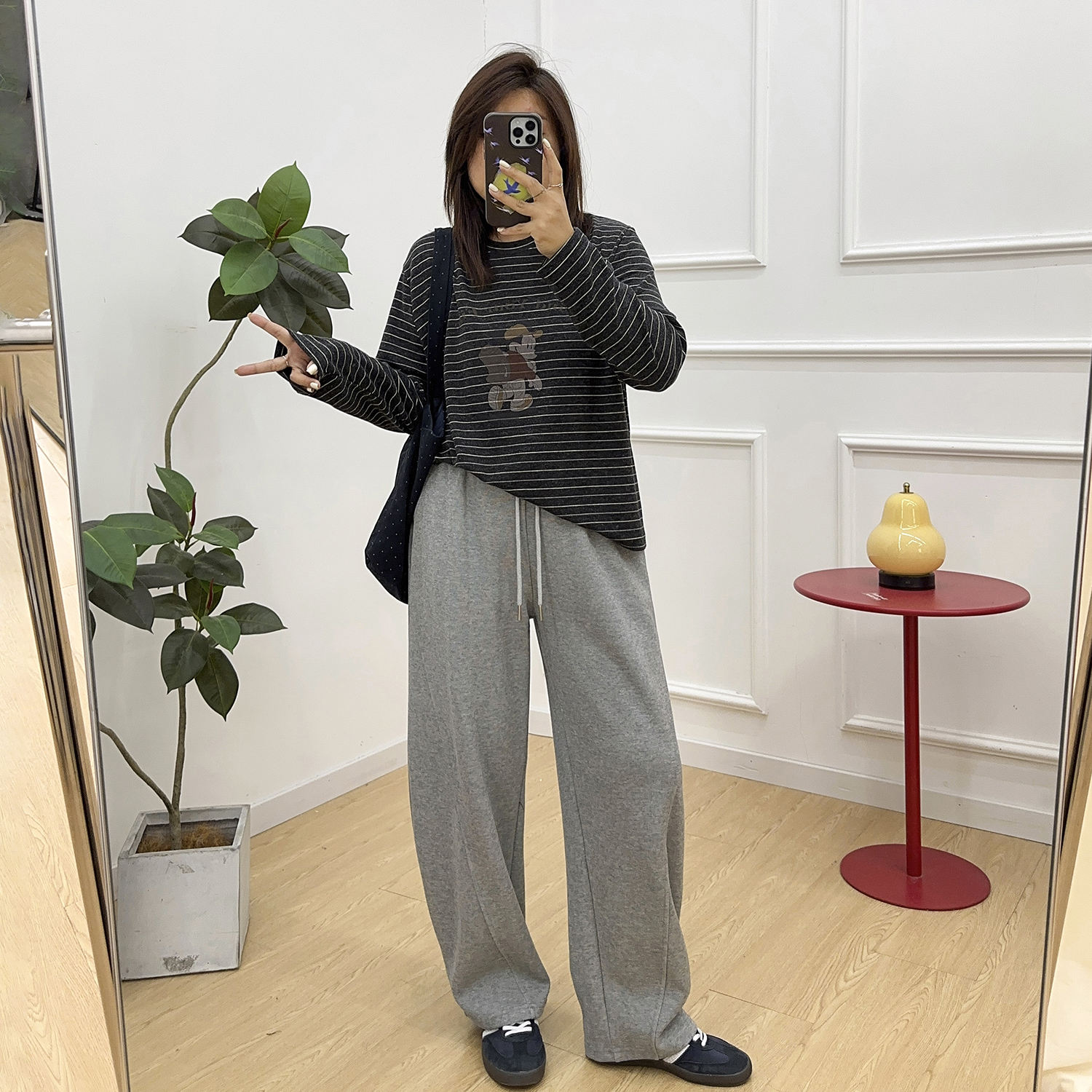 宛宛大码灰色休闲运动束脚卫裤女秋季新款胖mm宽松显瘦直筒阔腿裤