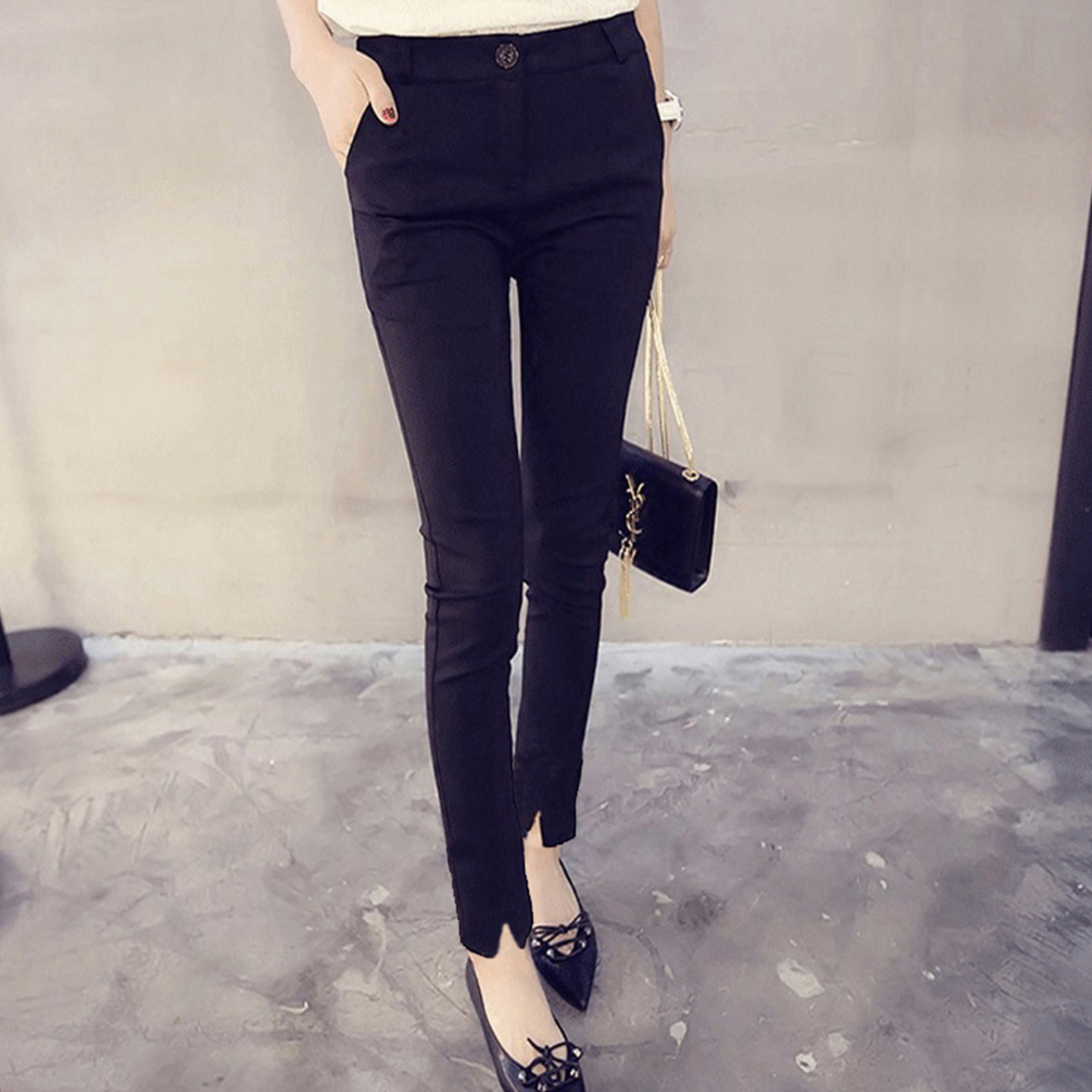 淘宝黑色显瘦春夏秋冬弹力薄款小脚百搭休闲直筒加绒八分九分长裤子女