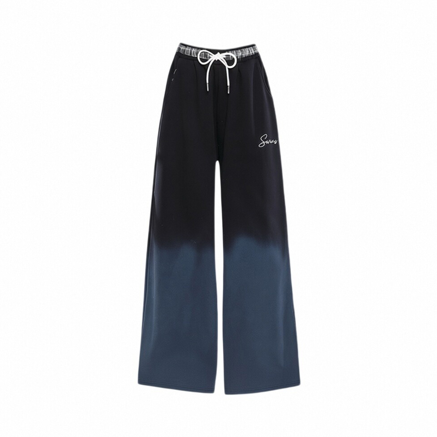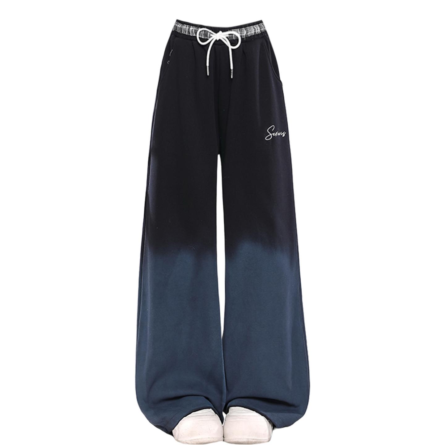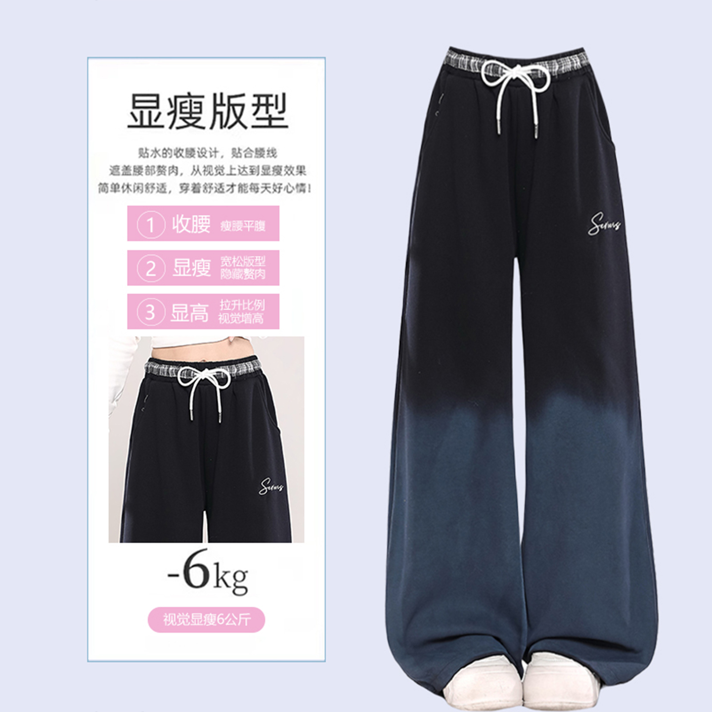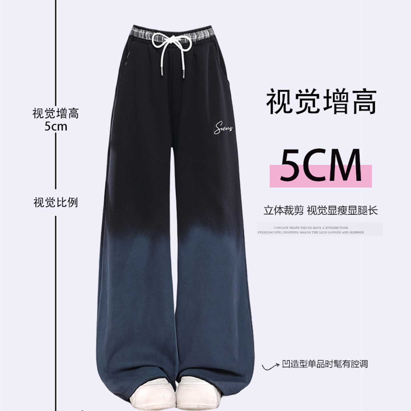 淘宝特大码女装美式个性渐变色阔腿休闲裤女胖mm黑色显瘦学生运动卫裤