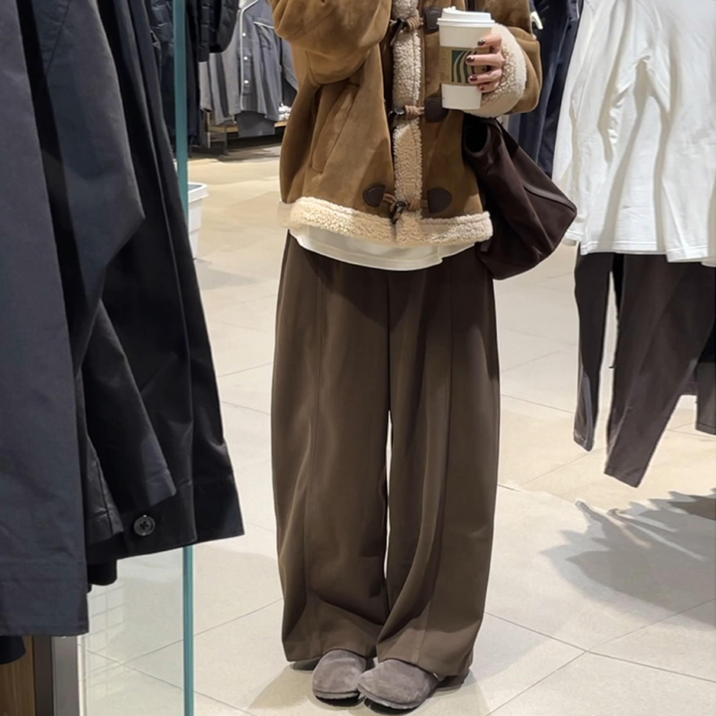 大码胖mm阔腿裤女2024新款秋冬高腰垂感直筒休闲加绒加厚糯米裤子