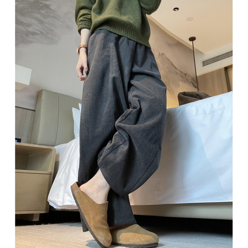 DM100大码百分百女装微胖mm冬季百搭舒适仿羊绒宽松阔腿休闲裤