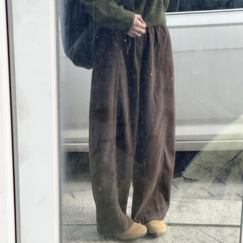 熙薇SIVI直筒卫裤女士冬季窄版加绒垂感休闲宽松设计师款羊毛裤