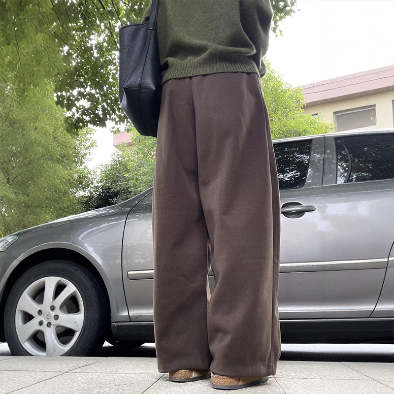 淘宝美拉德棕色毛呢阔腿裤子冬加厚大码女装休闲运动裤今年流行梧桐裤