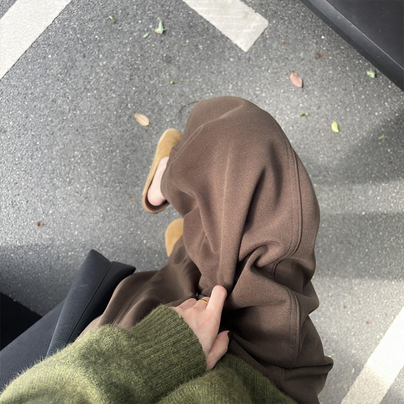 淘熙薇SIVI直筒卫裤女士冬季窄版加绒垂感休闲宽松设计师款羊毛裤