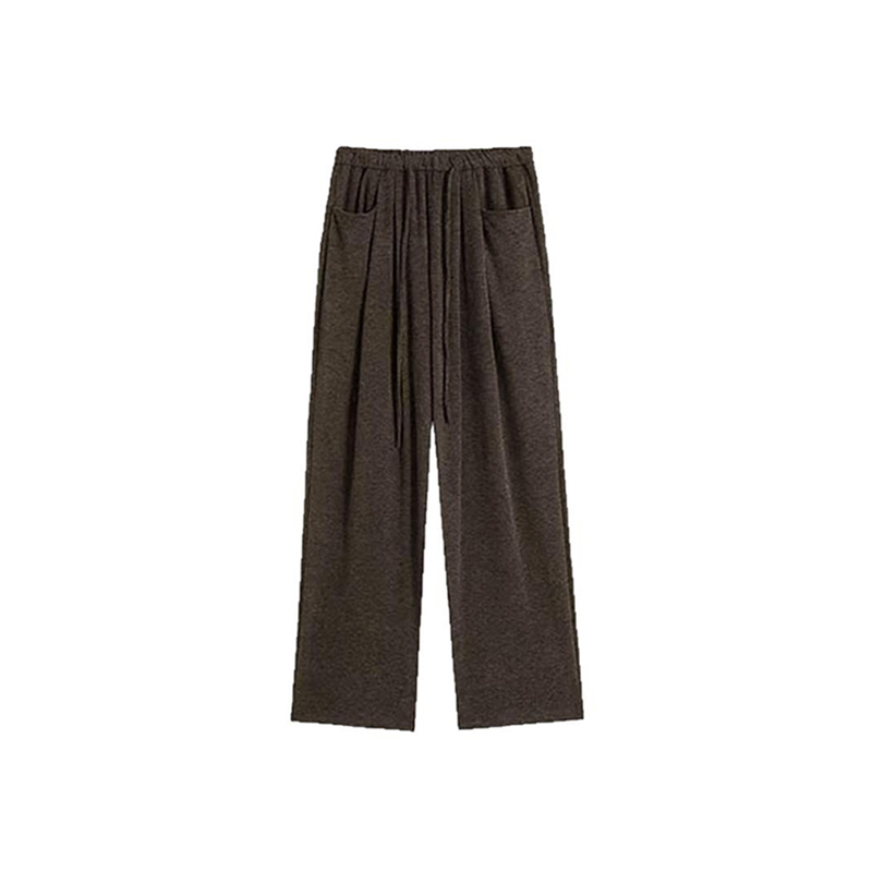 淘宝美拉德咖色针织糯米裤子女款冬季大码胖mm显瘦软糯休闲加厚阔腿裤