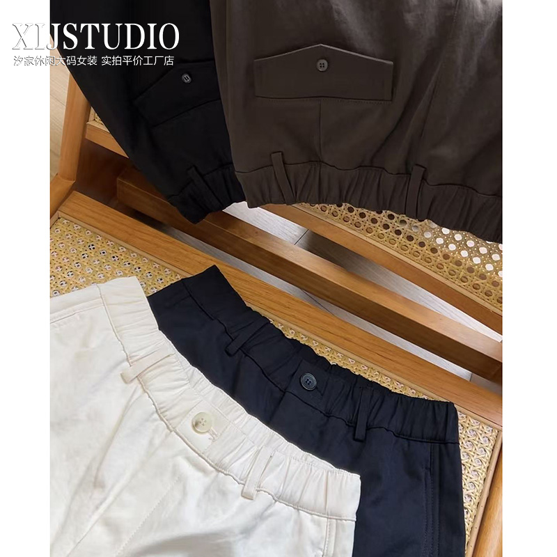 胖mm夏季薄款宽松休闲裤木子理想大码女装松紧腰显瘦长裤200斤