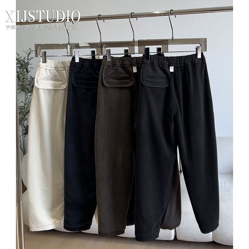 大码垂感糯米阔腿裤女新款秋冬季加绒慵懒毛巾裤窄版直筒休闲裤子
