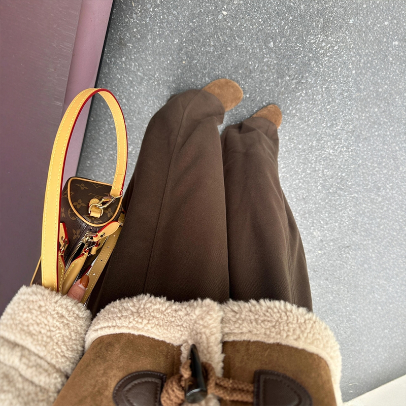 汐家女裤 2025秋冬微胖加绒休闲裤 不挑腿形大码高腰通勤老爹裤