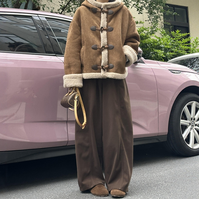 淘宝棕色毛呢阔腿裤子女款冬加厚休闲磨毛裤大码美拉德今年流行梧桐裤