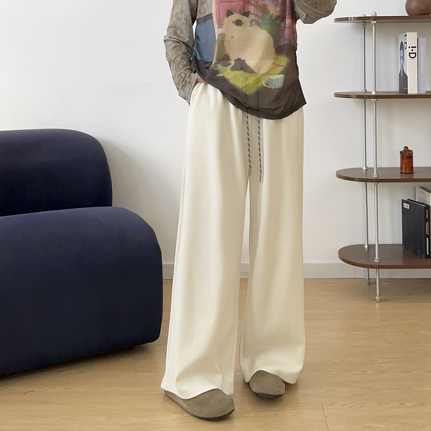 淘衣之派米白色糯米裤冬季胖MM显瘦直筒垂感休闲宽松慵懒风阔腿裤