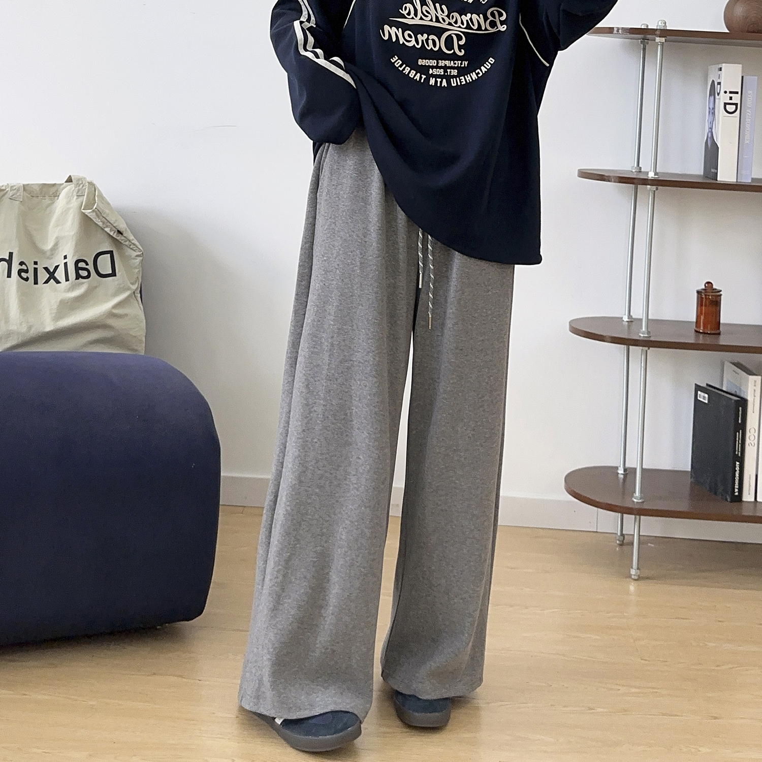 宛宛大码灰色休闲运动束脚卫裤女秋季新款胖mm宽松显瘦直筒阔腿裤