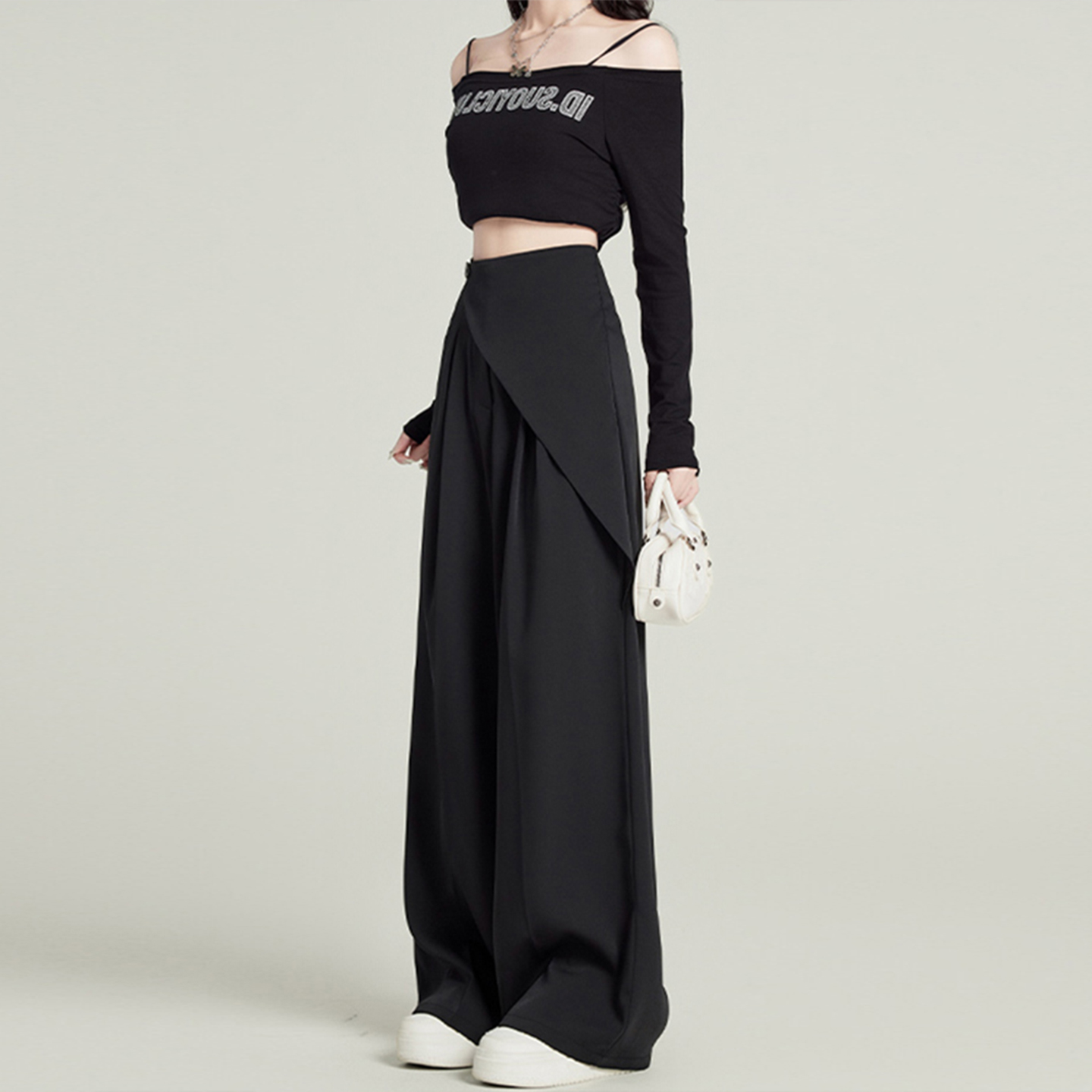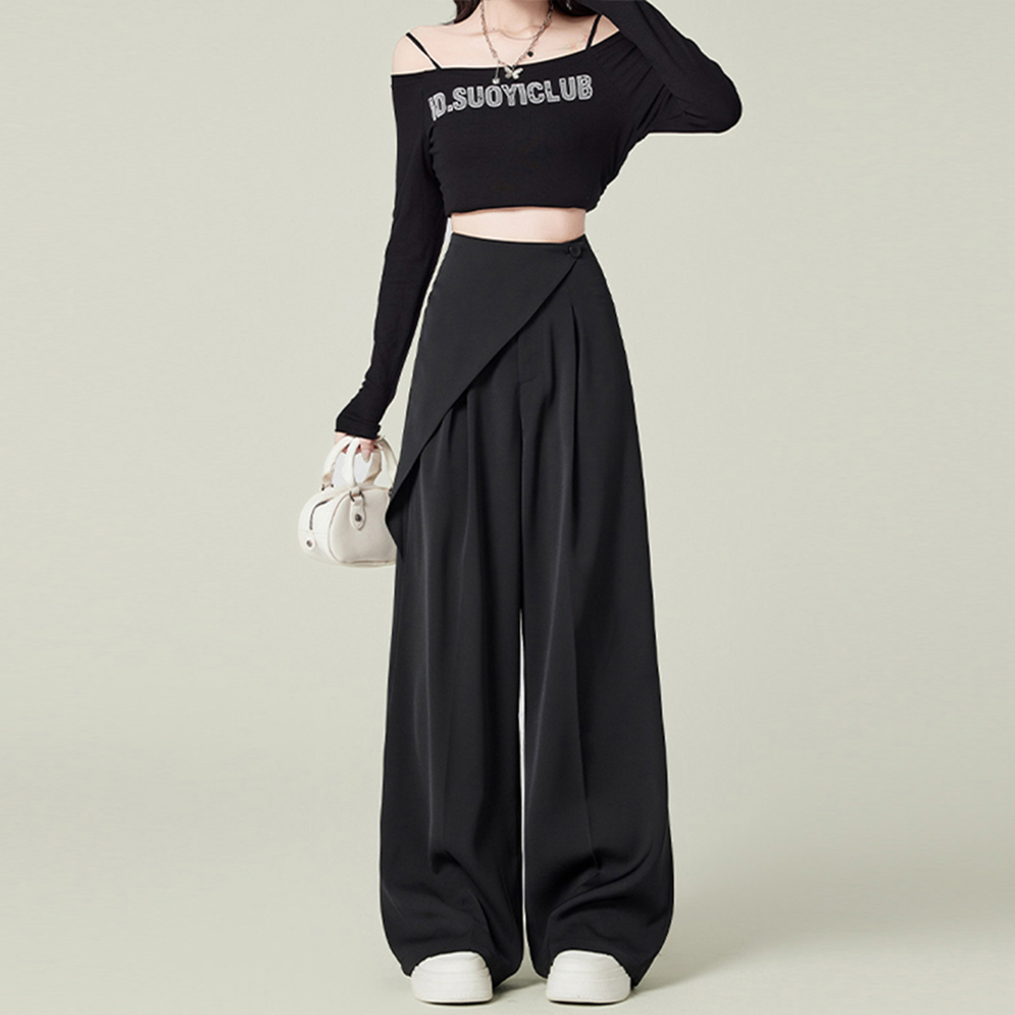 淘欧货高端定制黑色毛呢西装阔腿裤女2025冬季新款百搭垂感休闲裤子