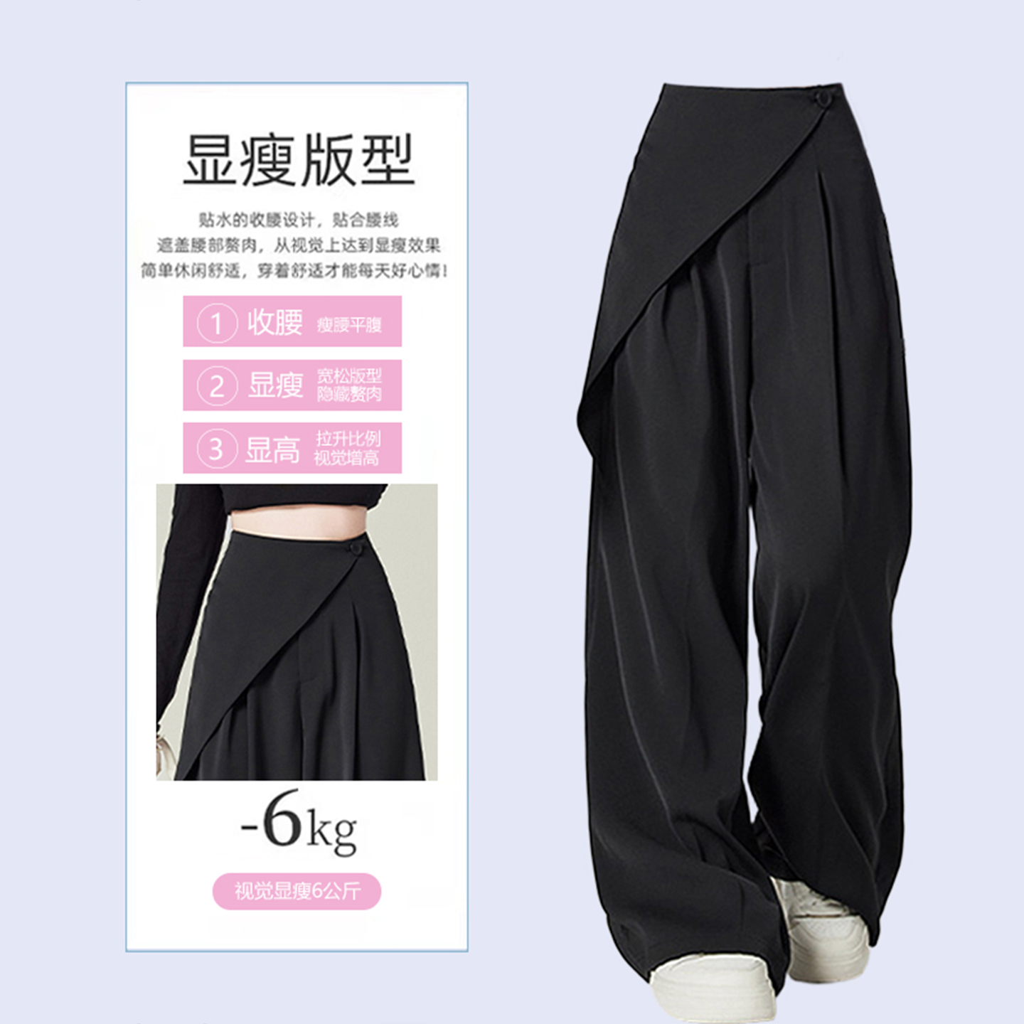 淘宝特大码胖mm黑色加绒加厚阔腿西装裤女极简风高级感显瘦保暖休闲裤