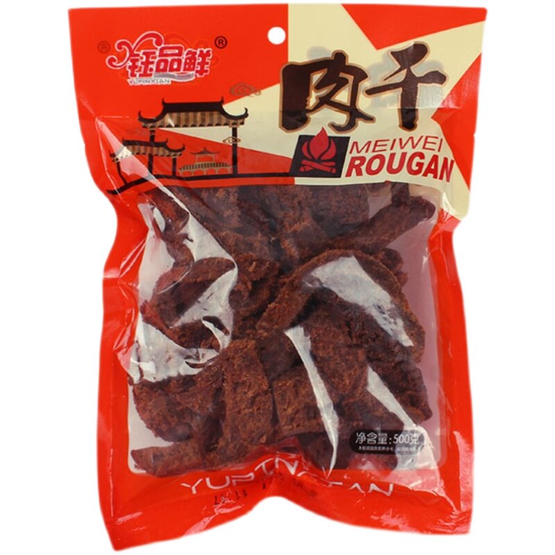 淘宝钰品鲜肉干500g包装休闲零食鸡肉条干耐嚼五香味袋装美味网红小吃