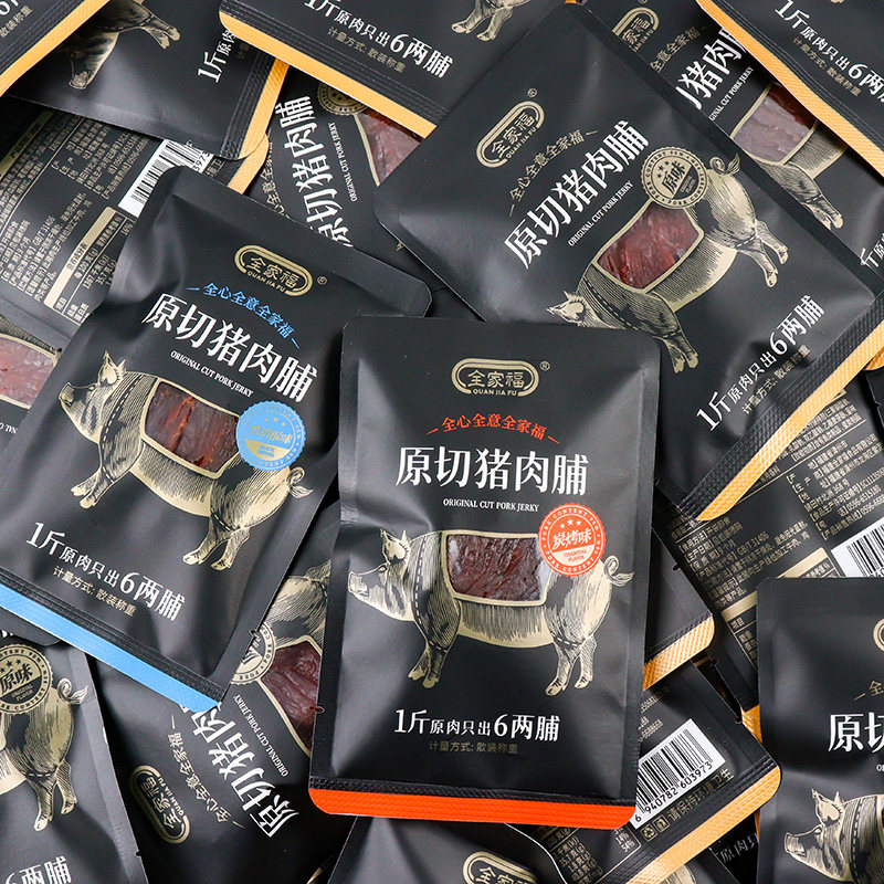 淘宝全家福原切猪肉脯独立包装方便携带黑胡椒即食猪肉干解馋小吃零食