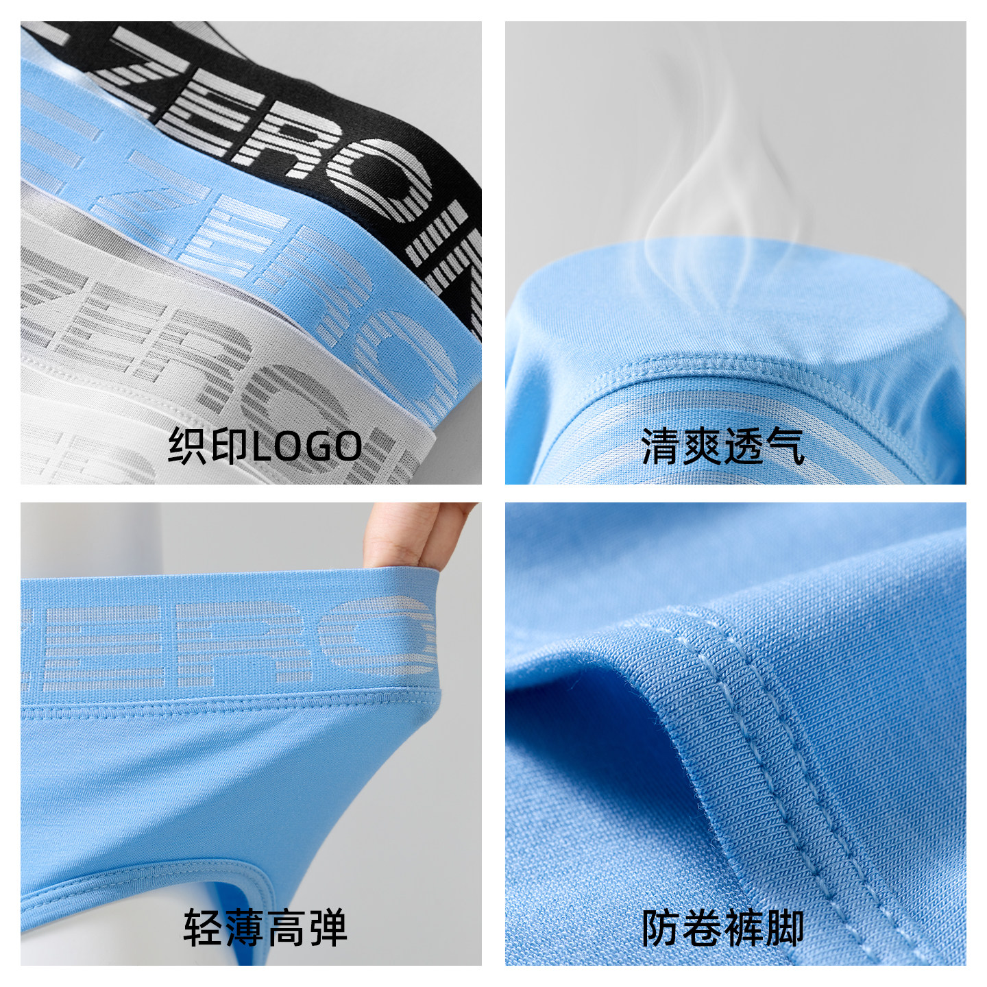 淘潮男士内裤超柔一片式三角裤低腰纯色中青年裤衩超薄冰丝性感底裤