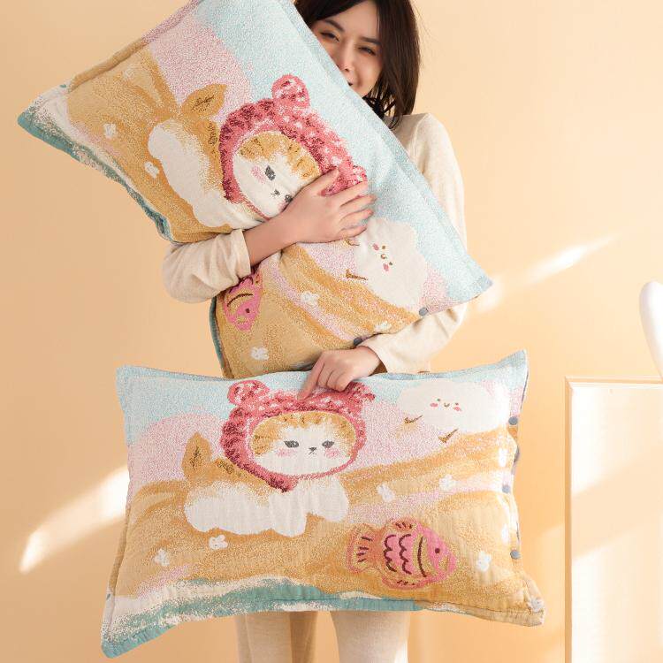 淘宝按扣纯棉纱布枕套一对装四季通用卡通不脱落吸汗防头油全棉枕头套