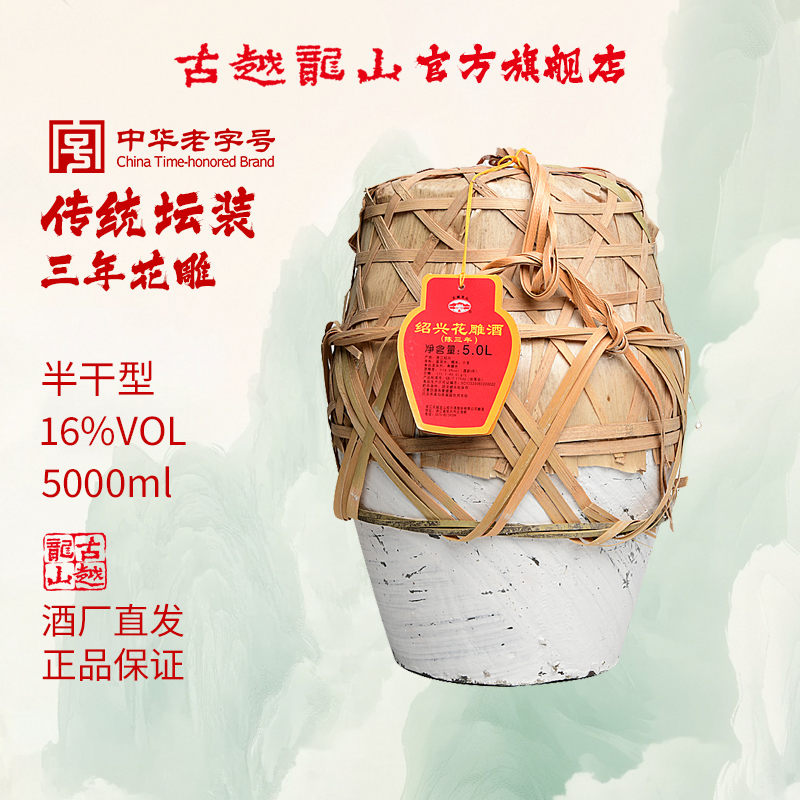天古越龙山绍兴黄酒干型特酿3L桶装黄酒糯米酒调味花雕酒厨房专用