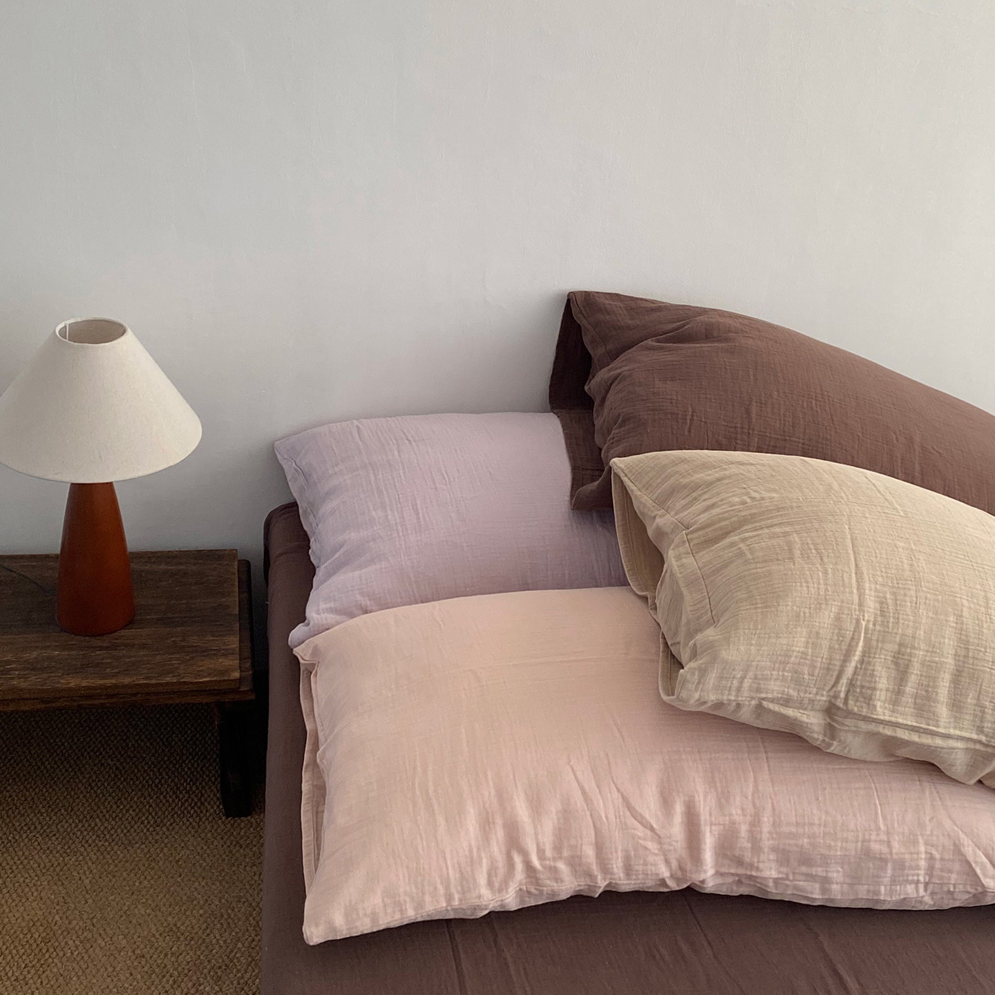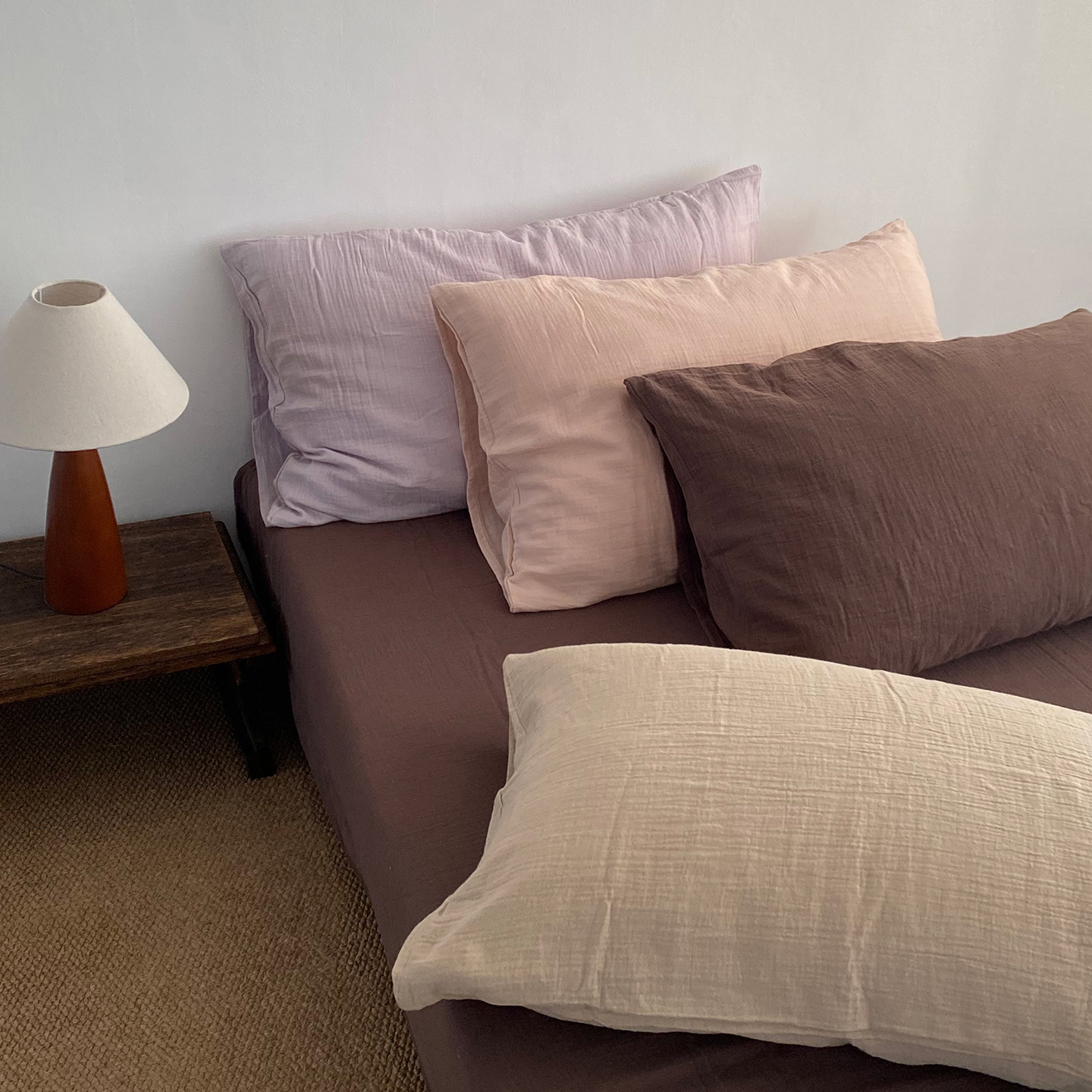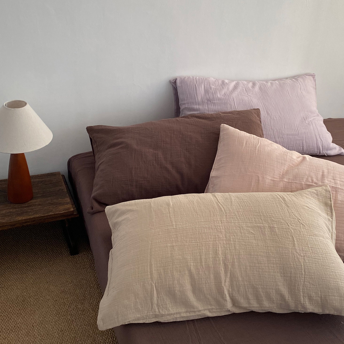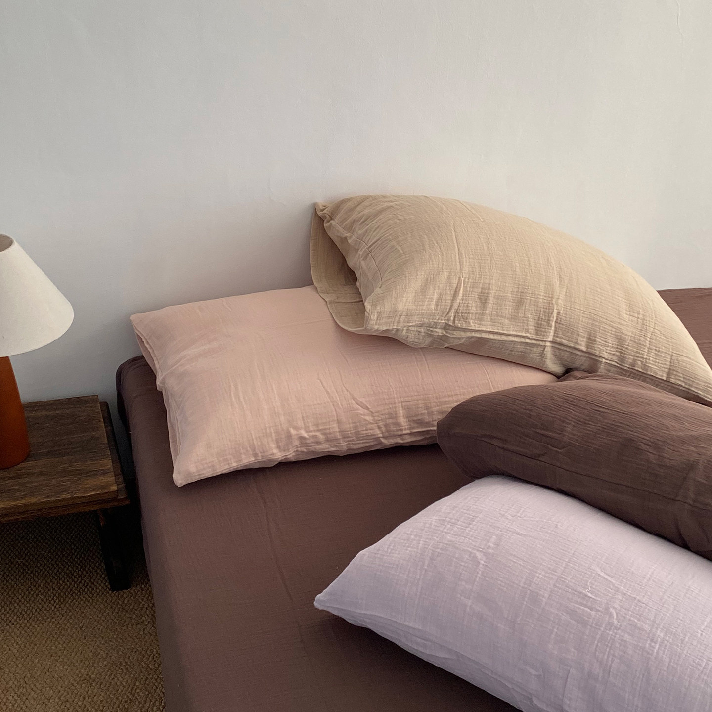 淘宝素尺美拉德色系枕套一只装丨A类双层皱皱纱枕头套枕皮纯棉全棉