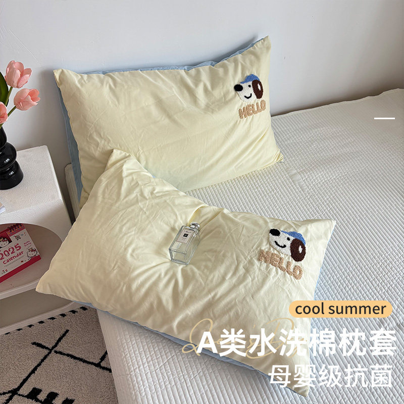 天猫2025新款水洗毛巾绣棉单个枕套头套装一对装2非全棉纯棉48cmx74cm