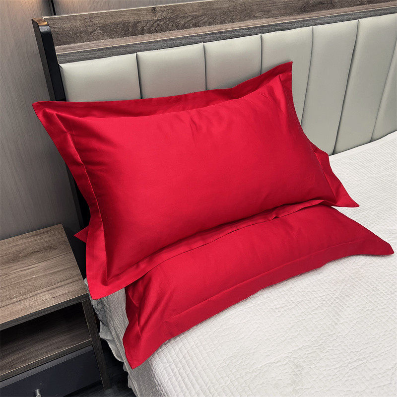 淘宝100支长绒棉枕套大红酒红结婚枕头皮纯色婚庆单人枕套48*74一对