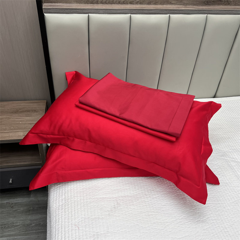 100支长绒棉枕套大红酒红结婚枕头皮纯色婚庆单人枕套48*74一对