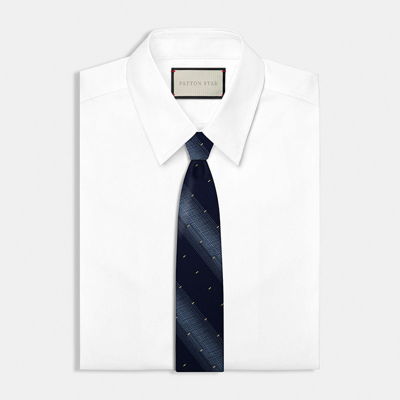 天猫[绅士蓝]PATTON STAR巴顿星蓝色条纹真丝领带男高级正装商务礼盒