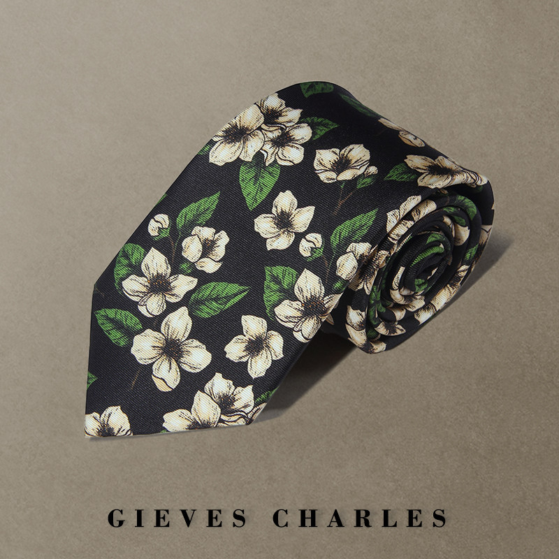 天猫GIEVES CHARLES男士高端领带复古非洲茉莉印花桑蚕丝领带男礼盒装
