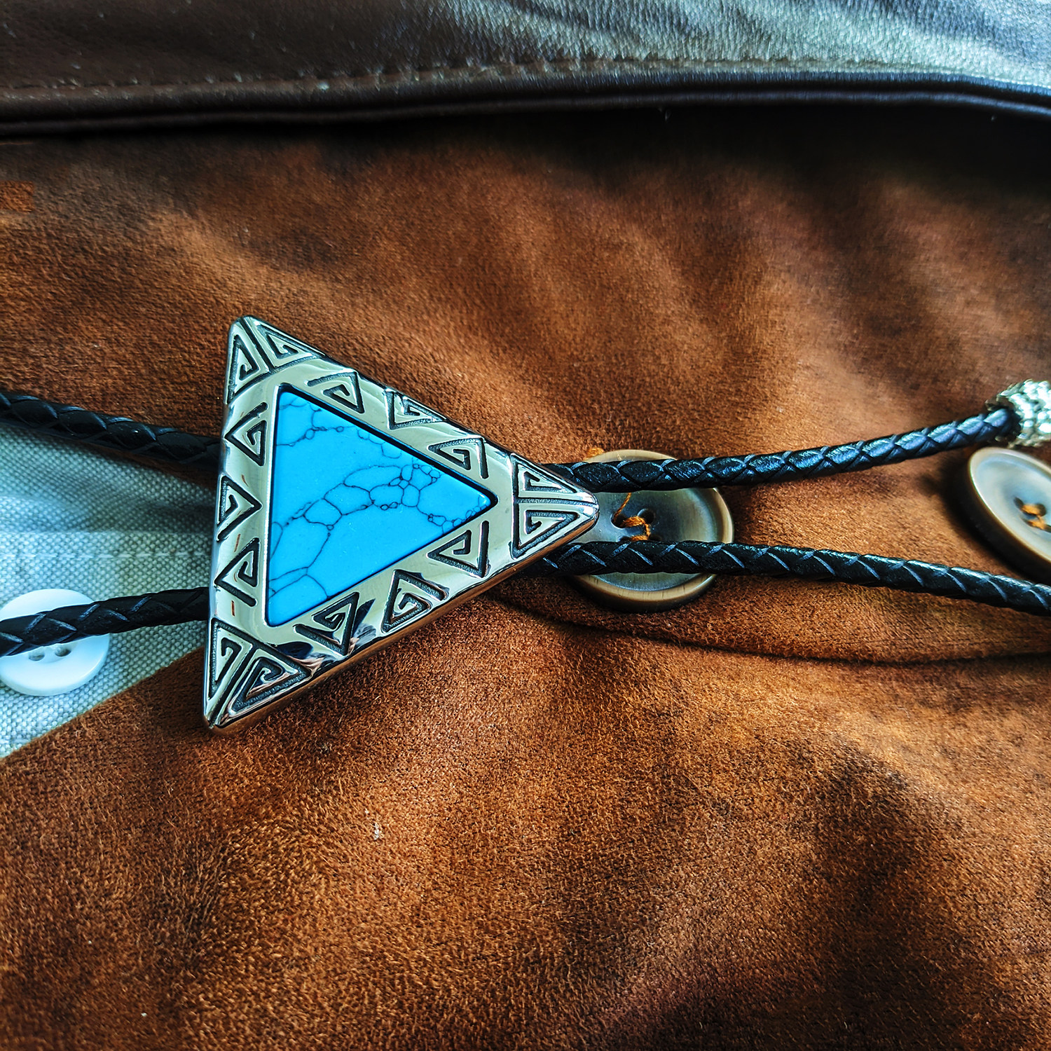 淘宝等边三角形波洛领带绳 手工原矿绿松石几何图形triangle bolo tie