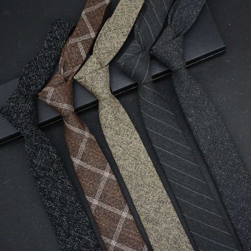 淘男女6厘米宽毛呢羊毛复古格纹窄版领带小众纯色咖色蓝色日系领带
