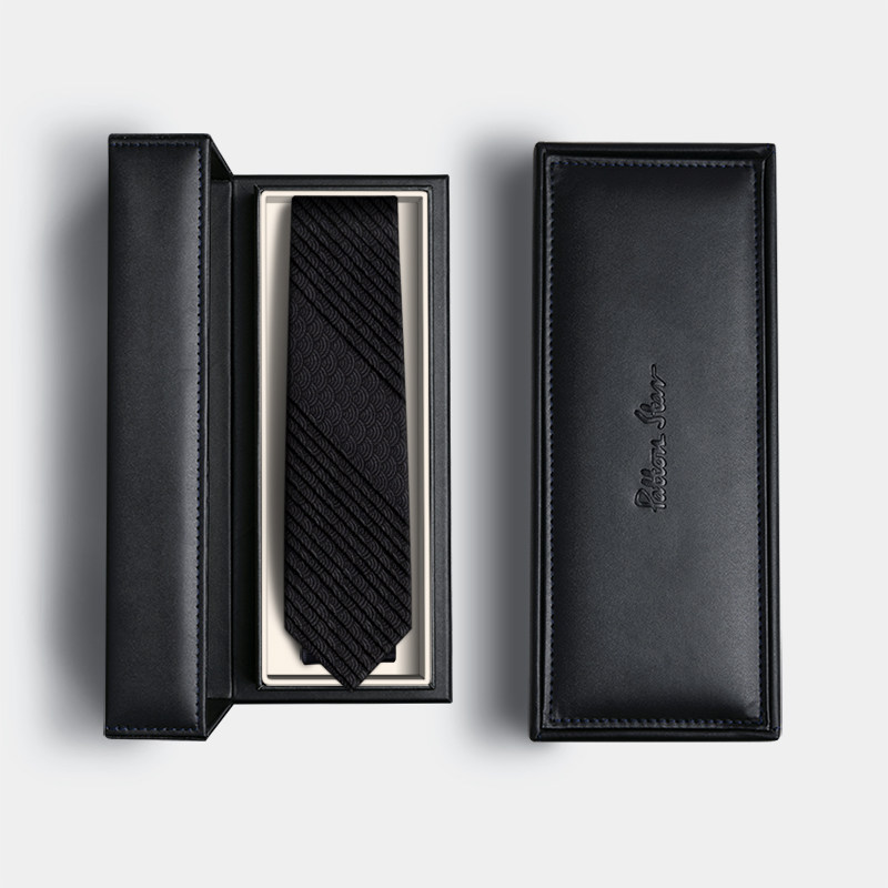 天猫[褶裥奢品]PATTON STAR巴顿星黑色条纹真丝领带男正装商务礼盒装