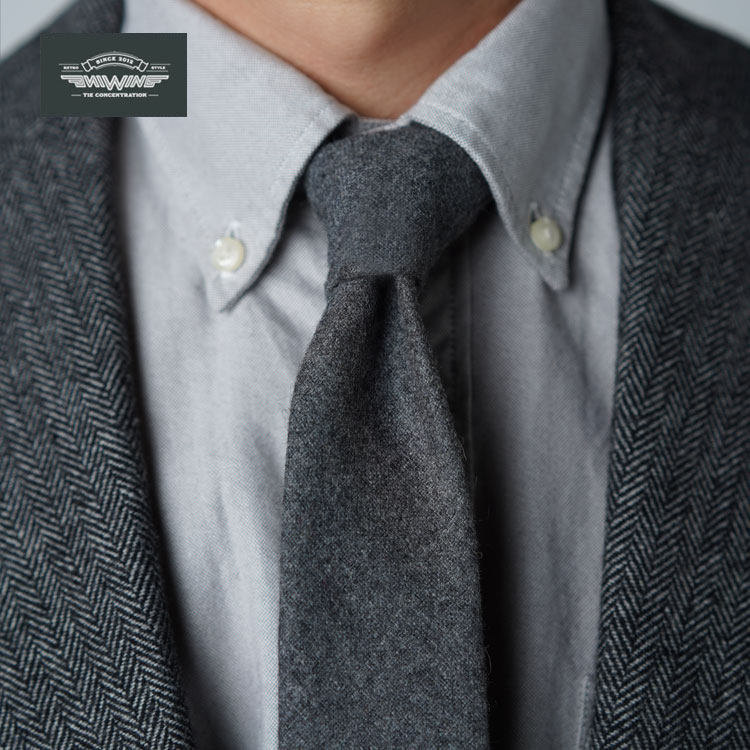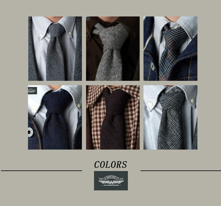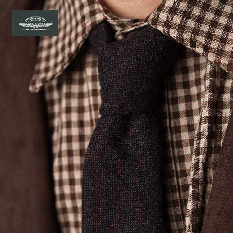 淘宝男女6厘米宽毛呢羊毛复古格纹窄版领带小众纯色咖色蓝色日系领带