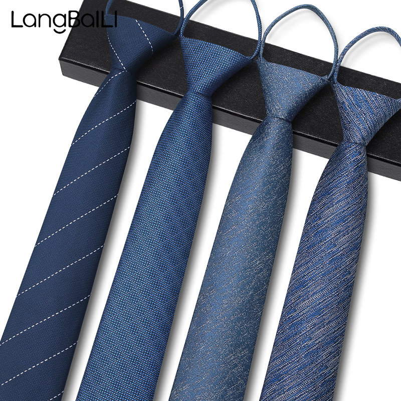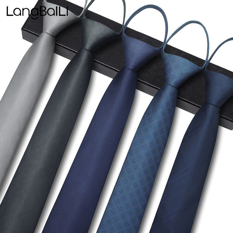 天猫领带男黑色免打正装商务拉链式灰色高级感易拉得蓝色懒人拉链领带