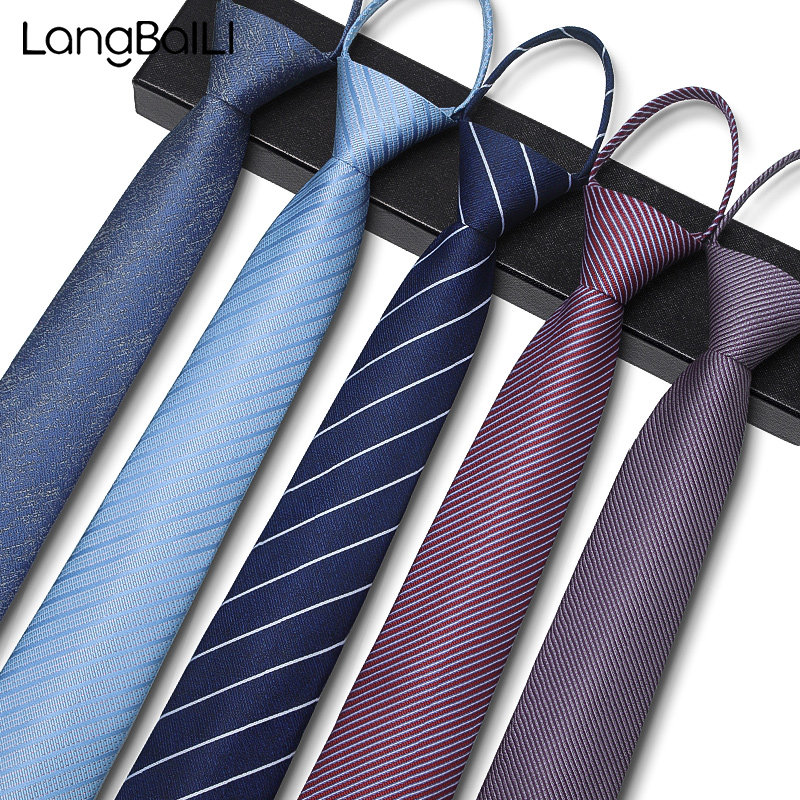 淘领带男女商务正装拉链式免打懒人领带多色条纹斜纹黑蓝新郎结婚