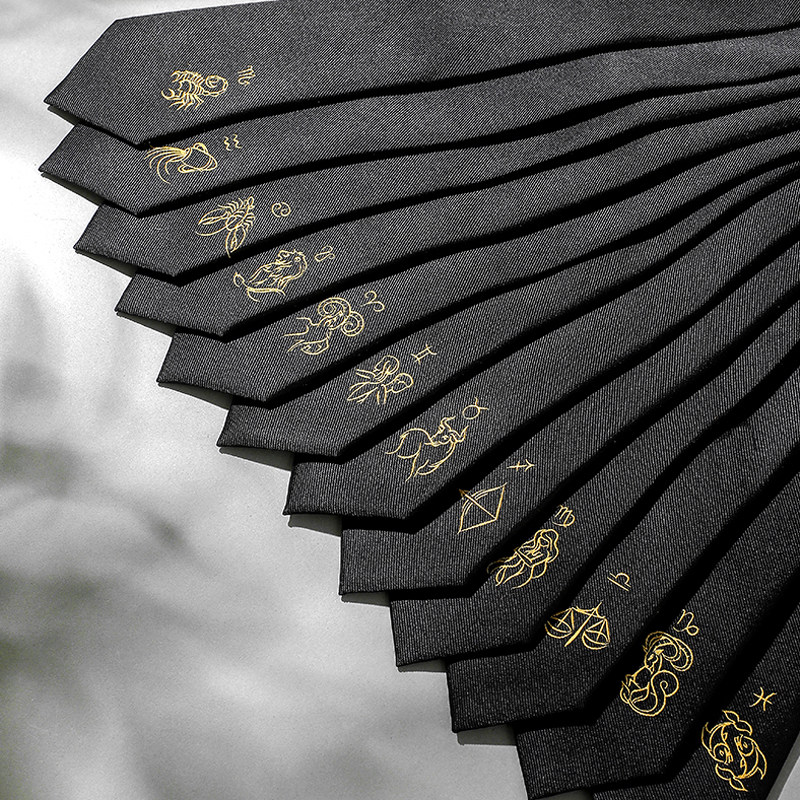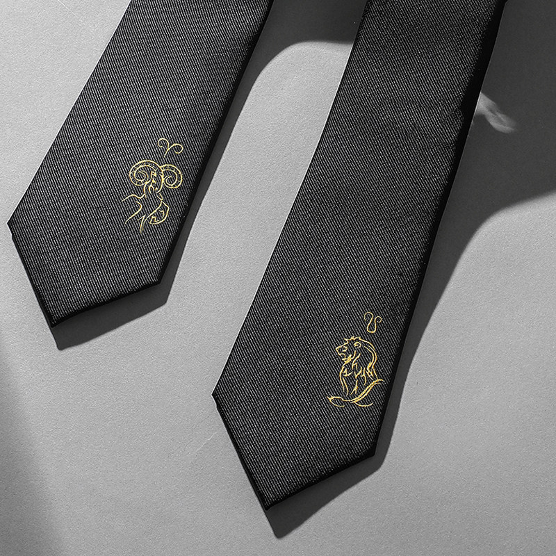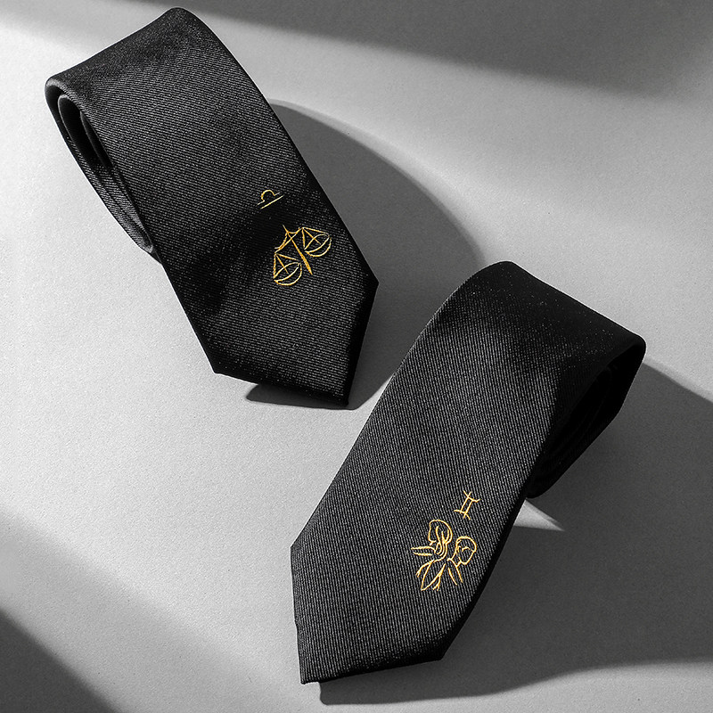 天猫GIEVES CHARLES十二星座刺绣领带桑蚕丝男士商务正装黑色手打领带