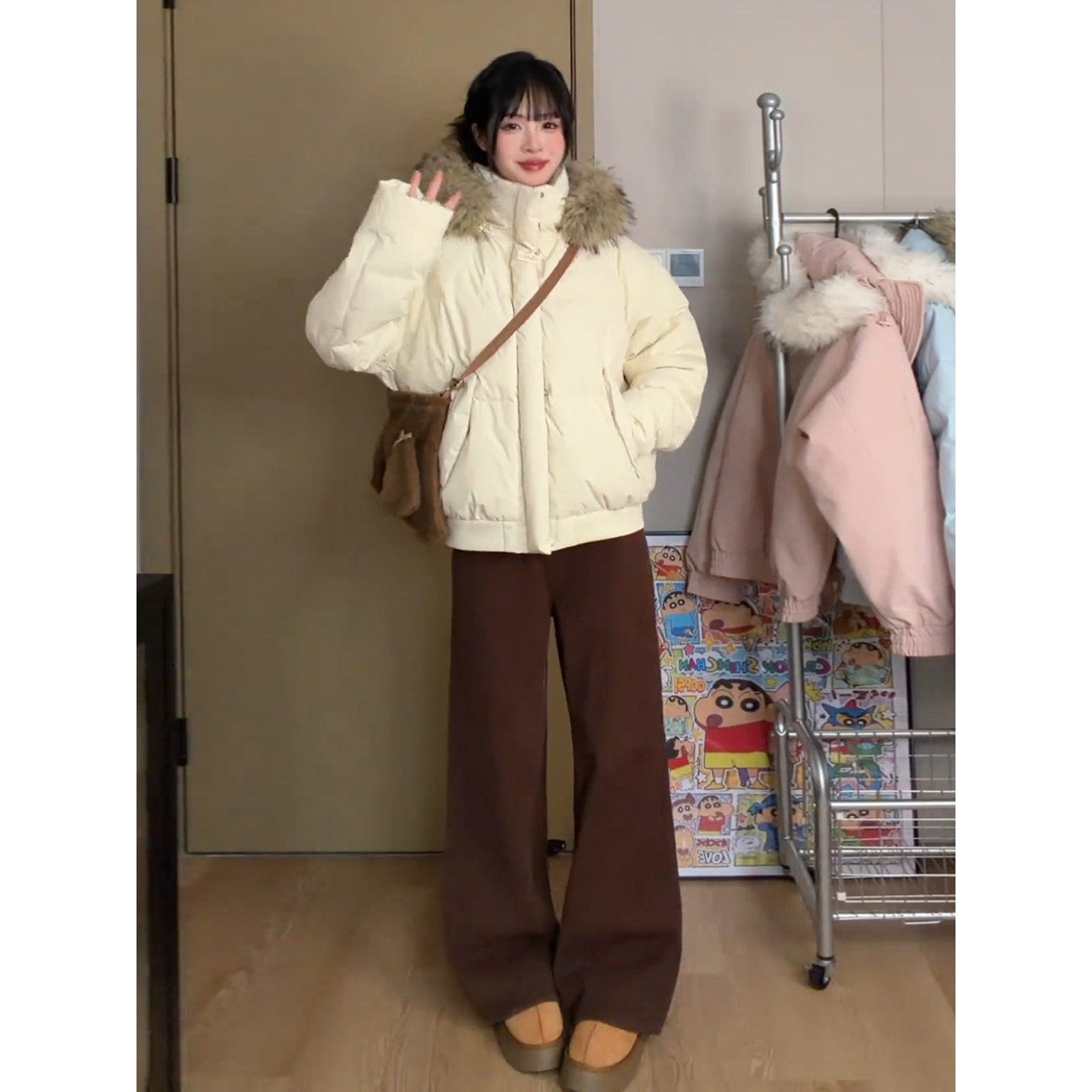悟空有货潮牌美式座山雕加厚毛领棉服男冬季复古保暖情侣百搭棉衣