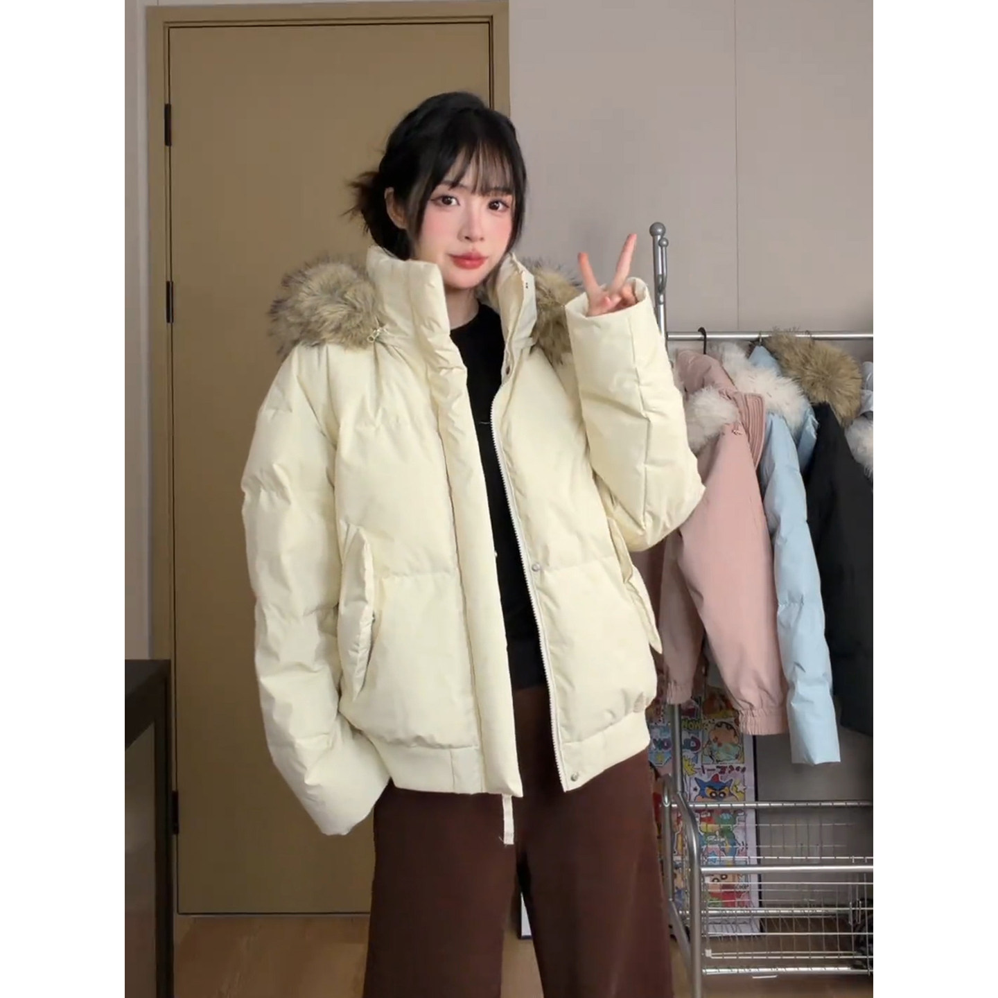 白色棉衣男冬季加绒加厚保暖羽绒服棉服外套男生情侣款美式棉袄子