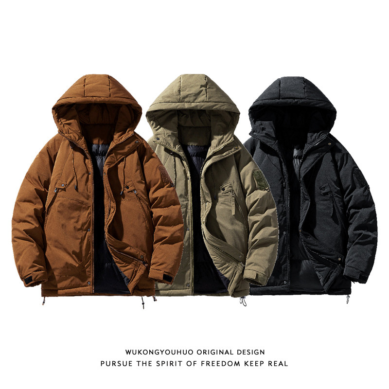 淘宝悟空有货潮牌冬季户外工装连帽棉衣男复古宽松保暖冲锋衣棉服外套