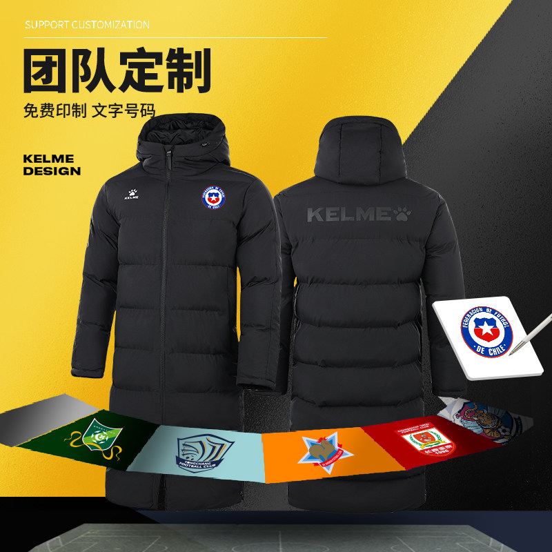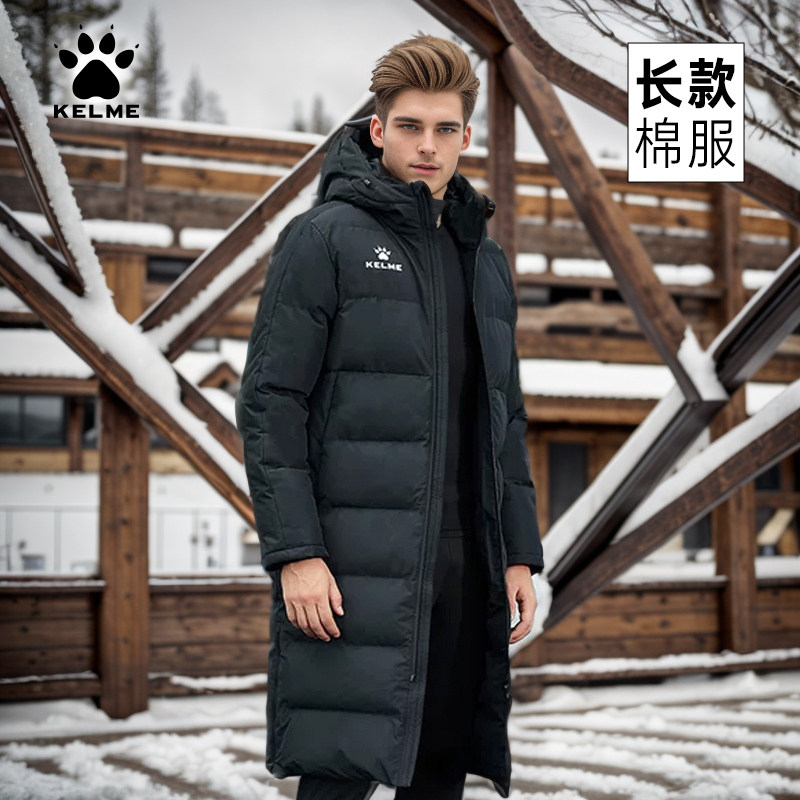 天猫KELME卡尔美运动棉服男长款羽绒棉大衣厚棉袄外套体育生冬训大衣