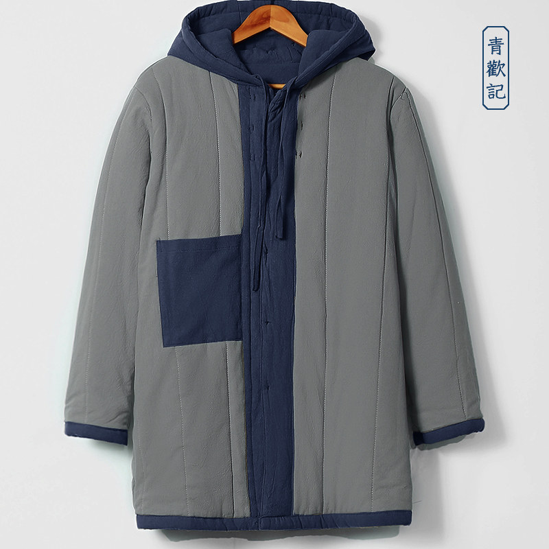淘宝青欢记男士冬季加厚棉衣外套休闲复古连帽宽松中长款棉花棉袄大衣