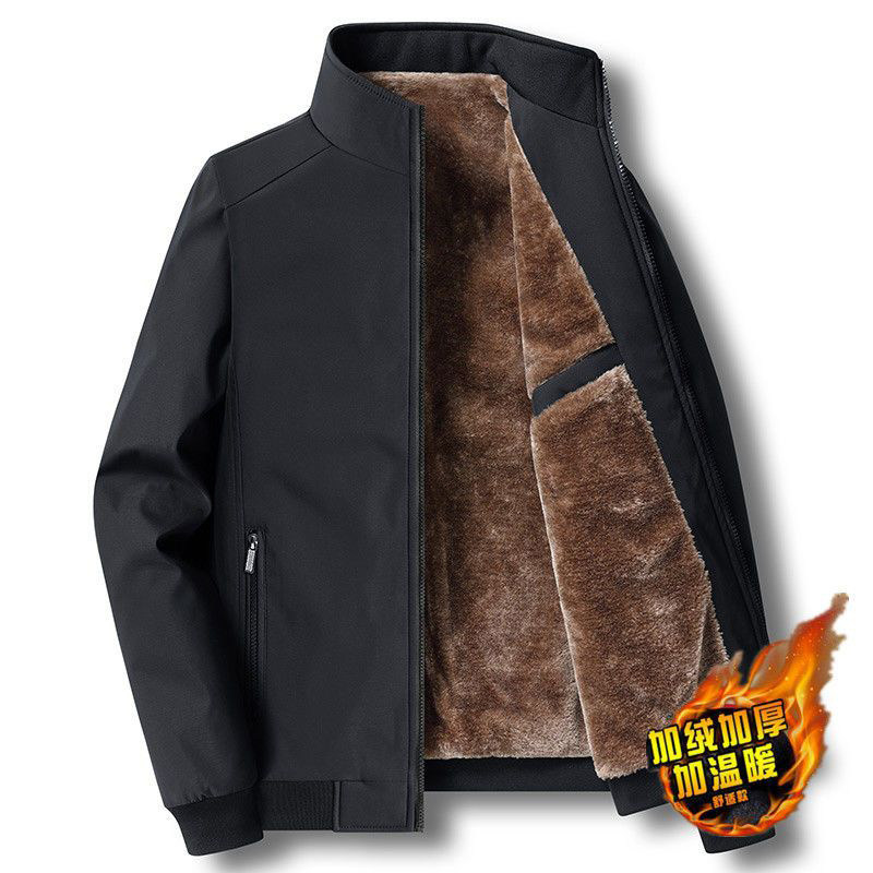 爸爸加绒加厚保暖外套秋冬季中老年男士上衣老人男装爷爷棉衣夹克