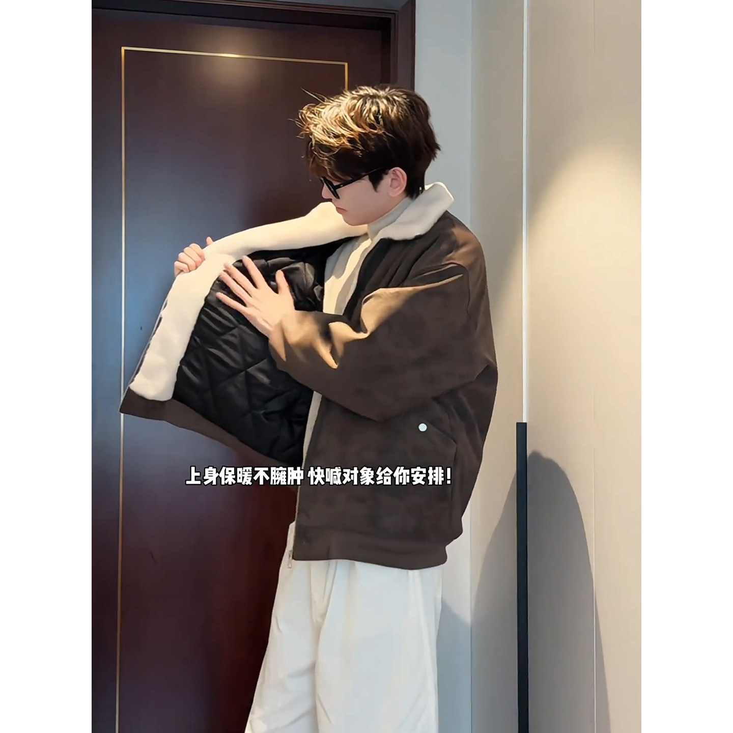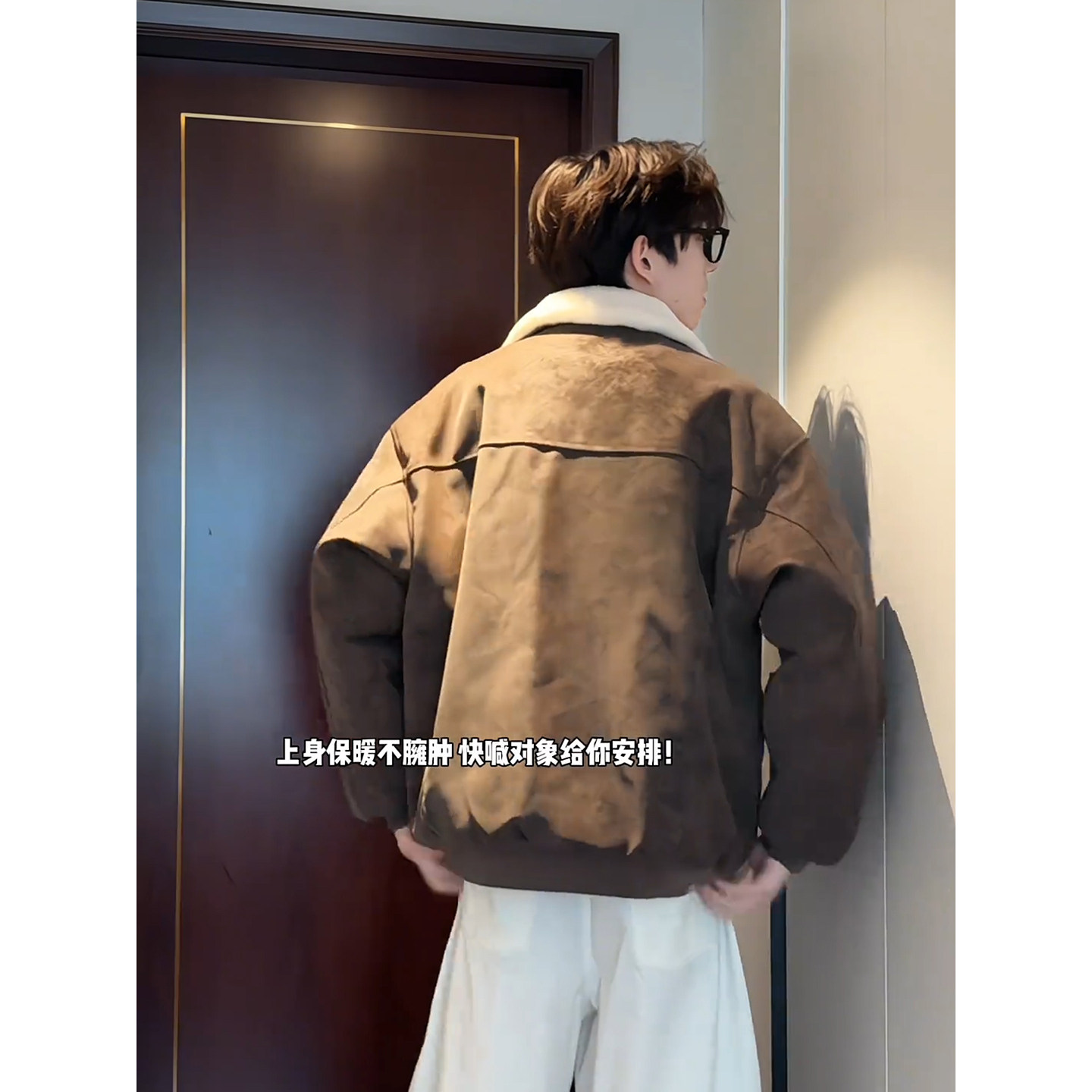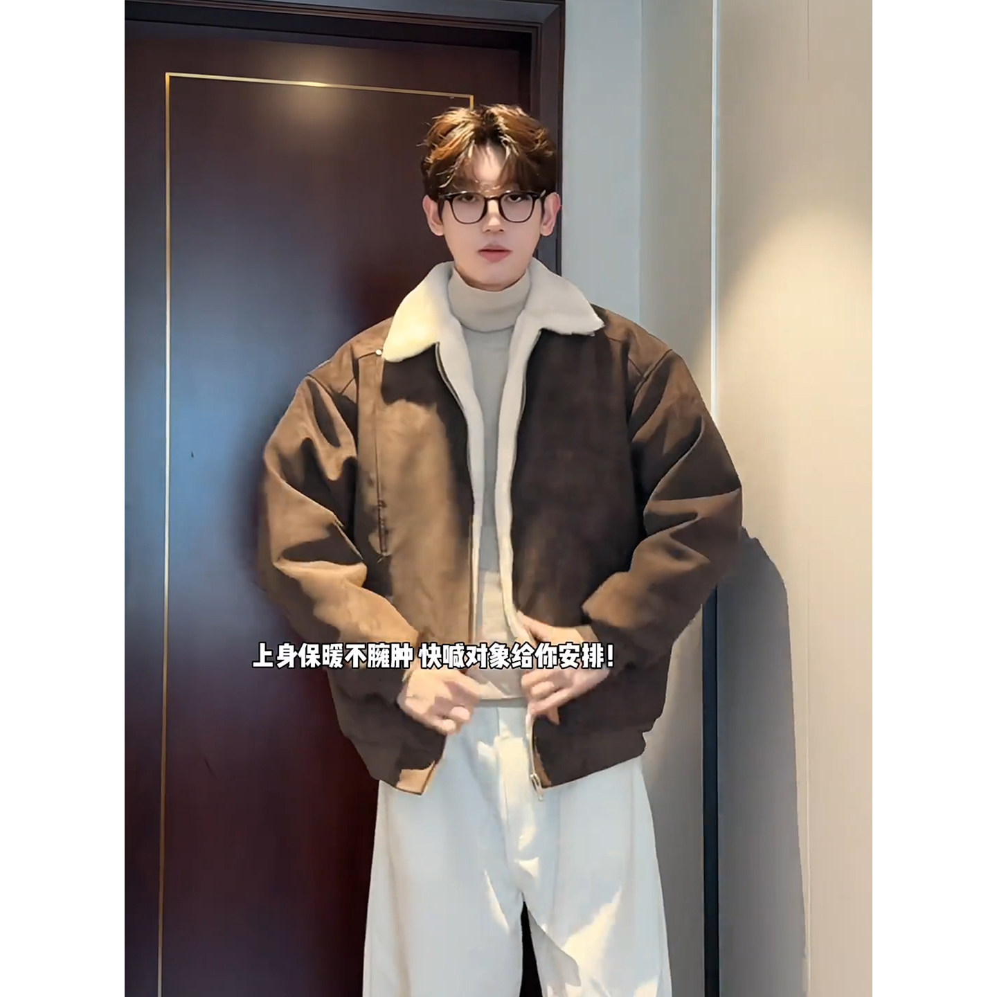 天猫美式雾面pu皮羊羔绒棉服男款冬季加绒加厚外套高级感翻领情侣棉衣