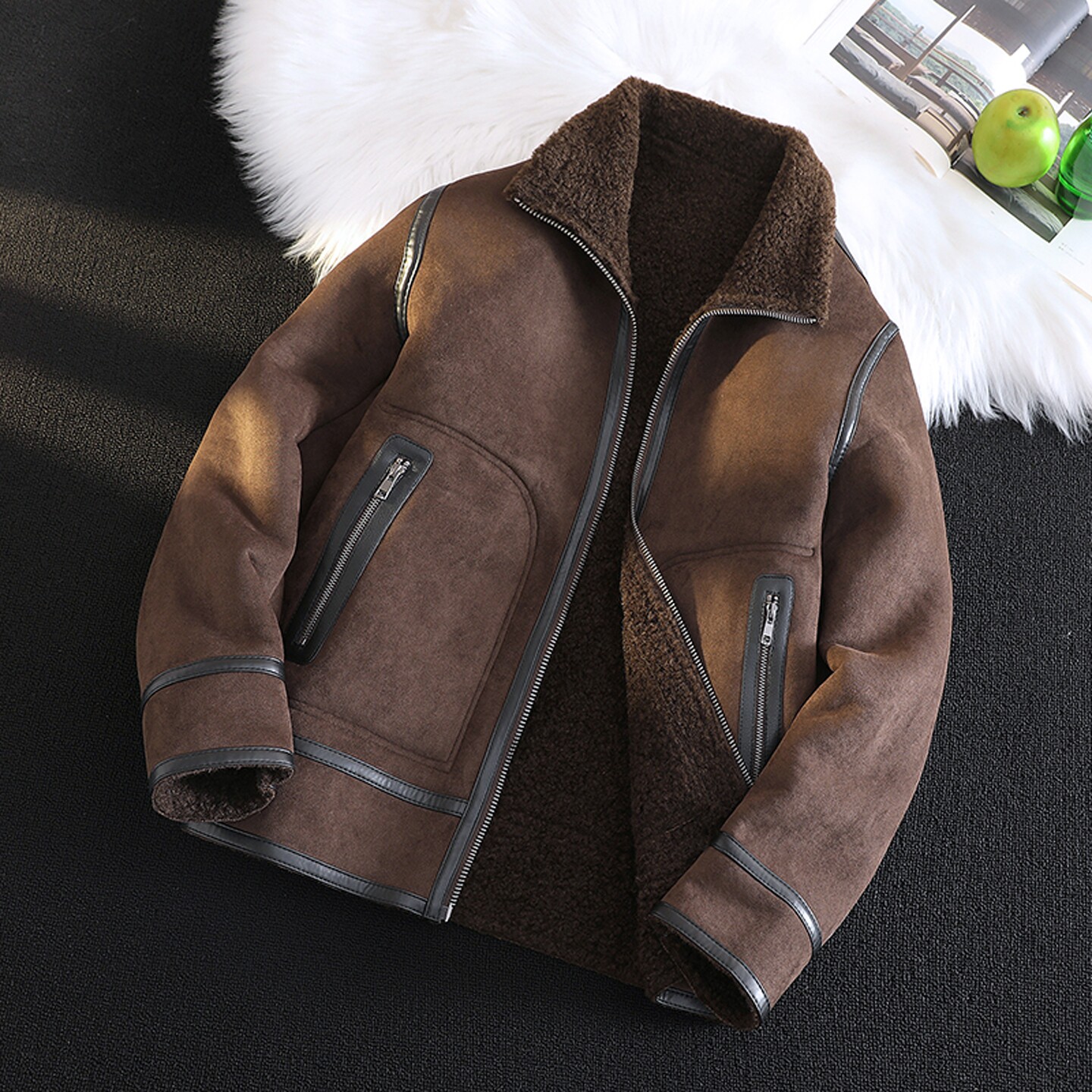 淘宝皮毛一体男士冬季大码加绒加厚皮衣短款机车服棉袄男装羊羔毛外套