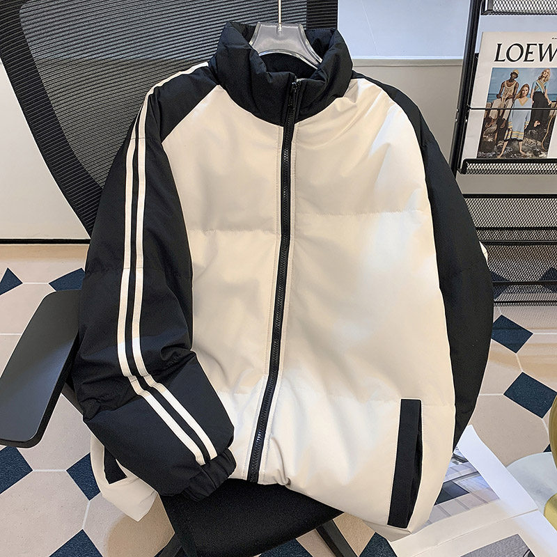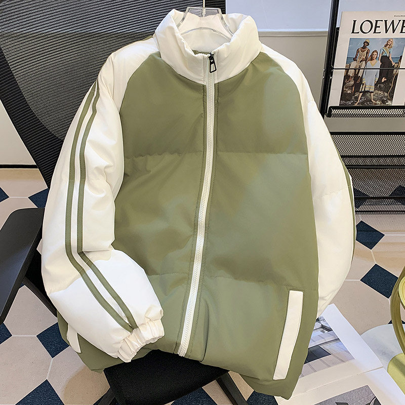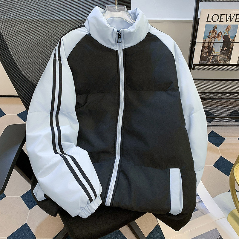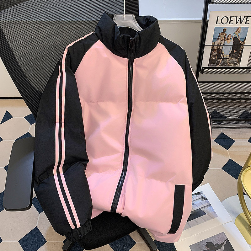 淘宝美式插肩条杠拼接撞色立领棉衣男女冬季新款加厚宽松羽绒棉服防寒