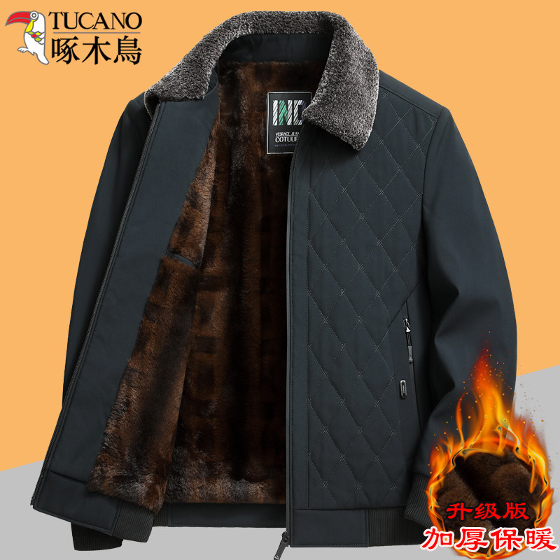 淘宝啄木鸟加绒外套男冬季中老年加厚保暖棉衣带毛领棉袄爸爸羽绒棉服