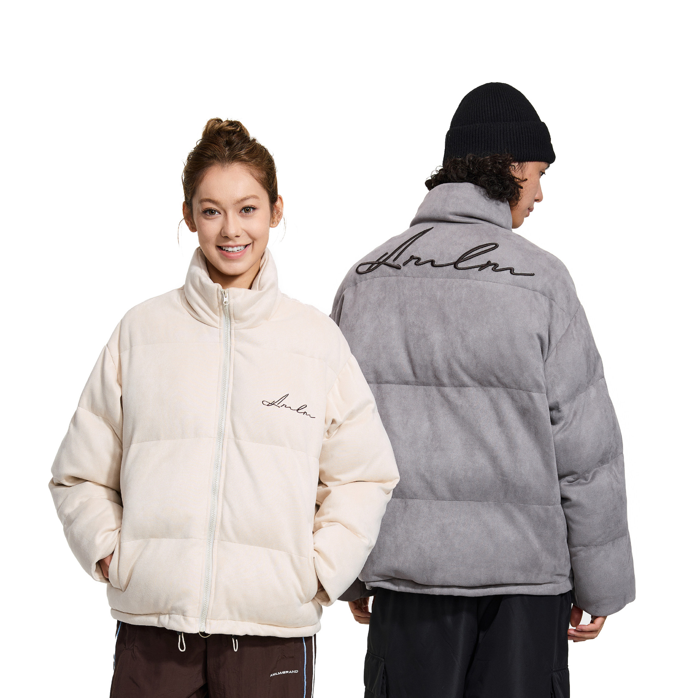AMLM 手写字母麂皮立领棉服男秋冬宽松情侣棉衣外套保暖棉袄潮牌