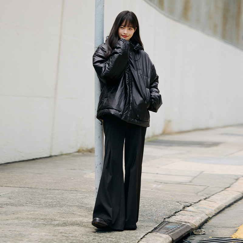 淘宝PSO Brand男装女装黑色仿皮微皱纹路可拆卸帽宽松棉服女款外套冬
