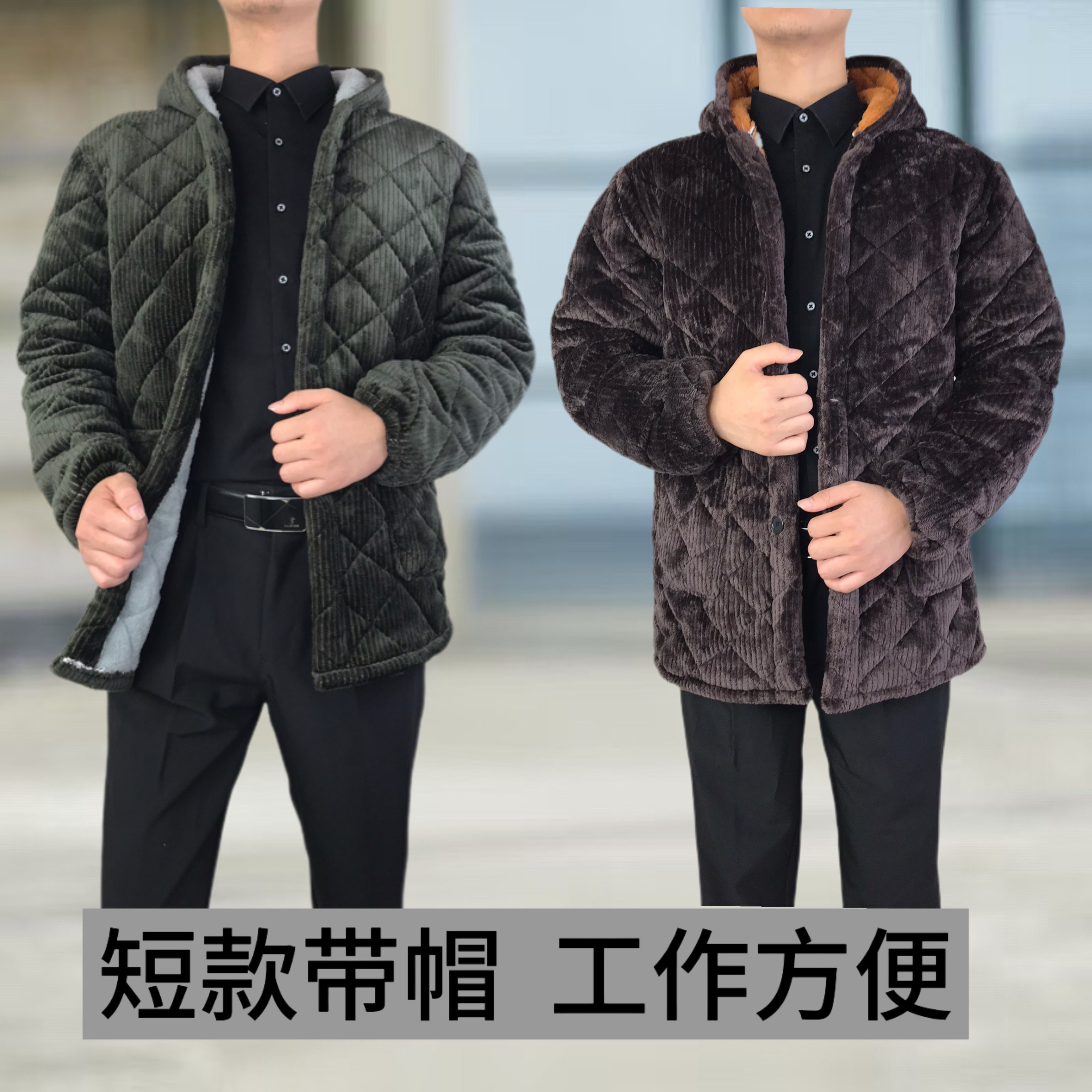 淘宝新款男士短款棉衣冬季加厚加绒保暖罩衣工作防寒棉袄带帽外套棉服