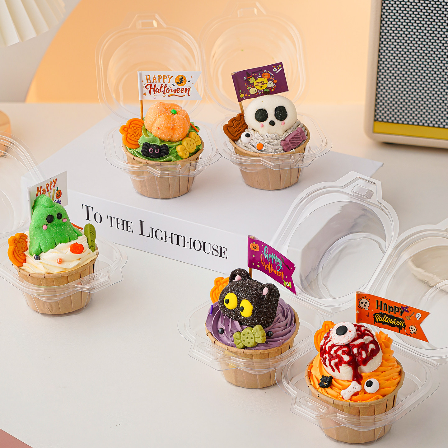 淘宝2025万圣节纸杯蛋糕装饰透明手提包装盒搞怪棉花糖眼珠子节日插件